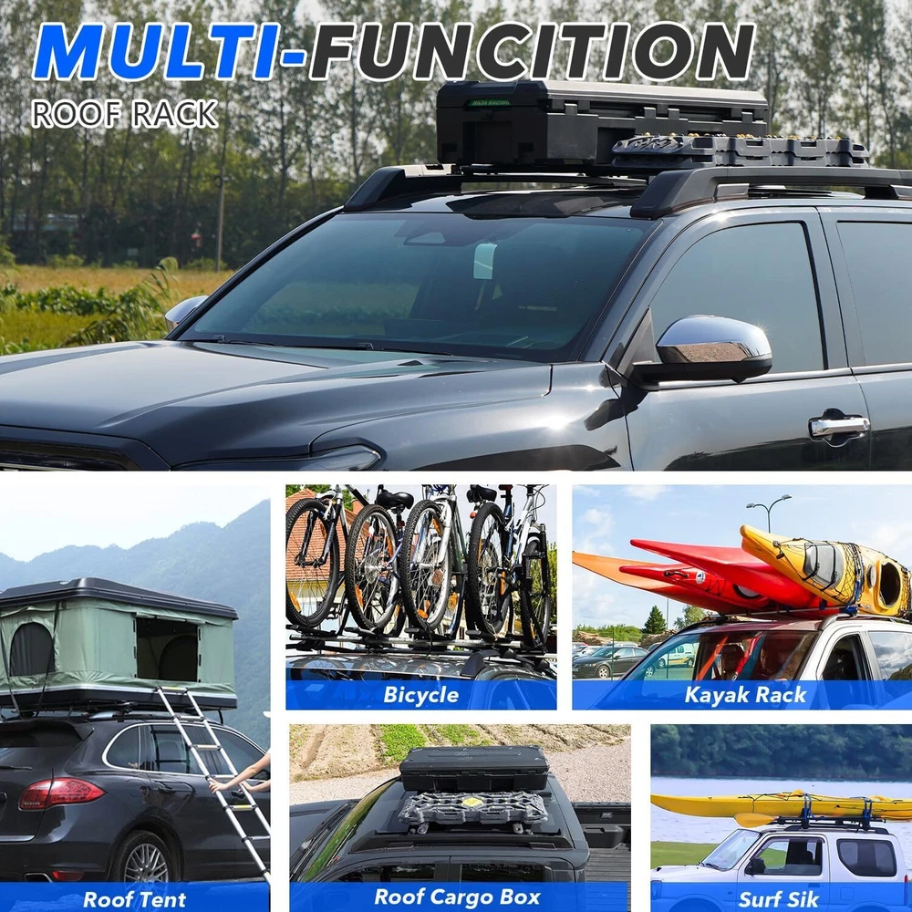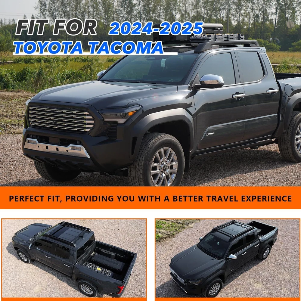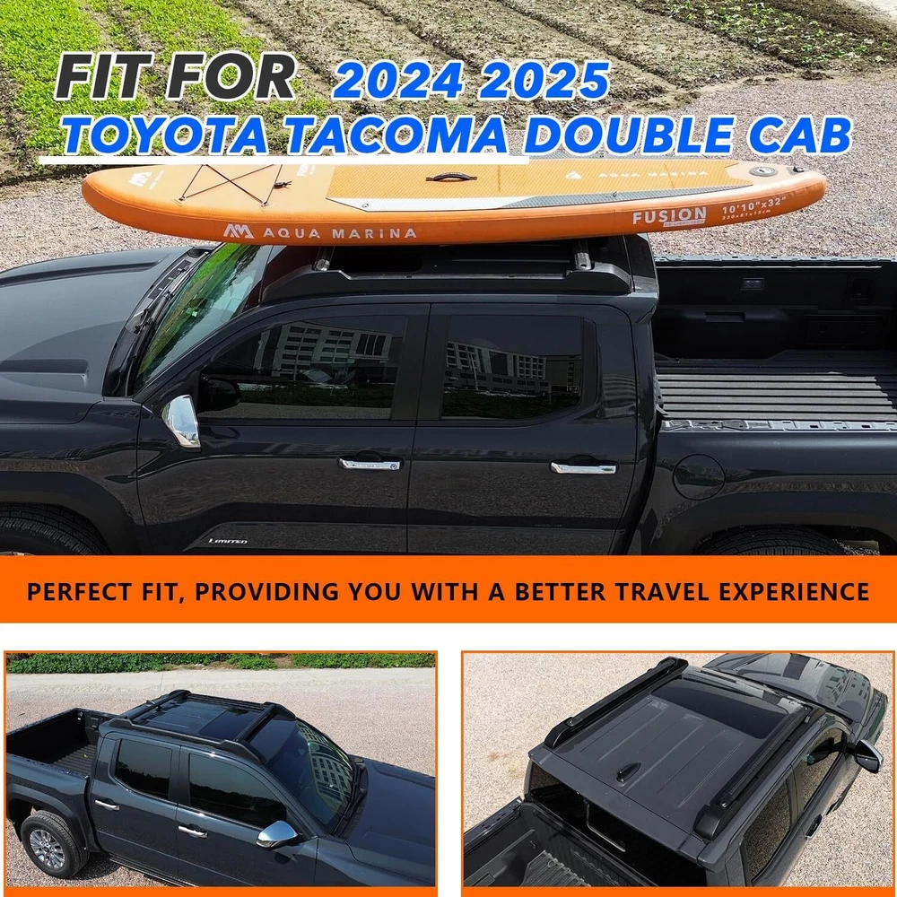 Specification: Durable and Long-Lasting: The black powder coating ensures its longevity and can endure harsh weather conditions. It can carry up to 220 lbs (100 kg) of load capacity, making it a great solution for transporting various oversized items. Versatile and Convenient: The set of two OE-style roof racks is an aftermarket product that can accommodate kayaks, canoes, snowboards, bikes, luggage, fishing poles, and more. Customize the perfect fit for your car's roof items with adjustable cross bars that can be easily moved and freely positioned to your desired distance. Fits: For Tacoma Double Cab 2024 2025 2026 .(With 4 Full Size Door) Pls Note: This is aftermarket, Not OEM one. Package Included: As pics show All necessary hardware is included Roof Rack & Platform with Movable Cross Bars for 2024 + Toyota Tacoma Double Cab Specification : Durable and Long-Lasting: The black powder coating ensures its longevity and can endure harsh weather conditions. It can carry up to 220 lbs (100 kg) of load capacity, making it a great solution for transporting various oversized items. Versatile and Convenient: The set of two OE-style roof racks is an aftermarket product that can accommodate kayaks, canoes, snowboards, bikes, luggage, fishing poles, and more. It provides ample space for all your adventure gear. Easy Installation: The package comes with all the necessary installation hardware making it a breeze to install. If you have any questions, our team is always available to assist you. Premium Quality and Affordability: Our product is a reliable solution for all your transportation needs. It's aftermarket and not OEM, which means you can get the same quality at an affordable price. Transport your gear in style with our roof rack! Customize the perfect fit for your car's roof items with adjustable cross bars that can be easily moved and freely positioned to your desired distance. Experience a peaceful and quiet ride with our roof platform featuring a windshield fairing at the front that effectively blocks wind noise. Say goodbye to distracting wind sounds and focus on enjoying the journey. Fits : For Tacoma Double Cab 2024 2025 2026 .(With 4 Full Size Door) Pls Note: This is aftermarket, Not OEM one. Package Included: As pics show All necessary hardware is included Payment Delivery details Terms of sales About us Contact us Payment We accept major credit card payments via Paypal. Payment must be received within 7 days of auction closing date. If you do not contact us or respond to our email within 7 days of auction closing date, we do not guarantee the item availability. We reserve the right to cancel any unwanted bids. Delivery details Flat rate shipping charge will be applied to the 48 continental USA States. Extra shipping fee will be charged to ship item(s) to HI, AK, PR, GU, VI, APO, FPO . Item(s) will be shipped via UPS Ground or USPS or Fedex within 3 Business days after payment is received. A Tracking Number will be upload on platform as soon as item(s) is shipped. International buyers please note, we are not responsible for any custom duties, taxes and brokerage fees. For some oversize packages, we may not be able to ship via USPS. Terms of sales All of our items are professionally made and guaranteed to fit. A professional installation is always recommended. Please send a message over eBay if you have any questions. We accept returns within 30 or 60 days after you received the item(s). All returned items must be new and in original package. The buyer will pay return shipping fees. No refund will be made for damaged parts. Shipping and handling fees and insurance fee are not refundable. About us Our warehouses are located in CA and NJ The transportation time is approximately 3-5 working days Contact us Your satisfaction is our top priority. We stand behind all products that we sell. If you have a problem with any of our listings, please allow us to work it out. Our business times are Monday-Friday 9:00- 5:00 Pacific Time. Office closes on weekends and holidays. We are striving to earn a 5- star rating with every purchase. Please take a moment to leave us a positive feedback when you receive your order. If you are not satisfied, please let us know before you leaving feedback. Please always include your purchase eBay item number in the mail whenever you have any questions.
