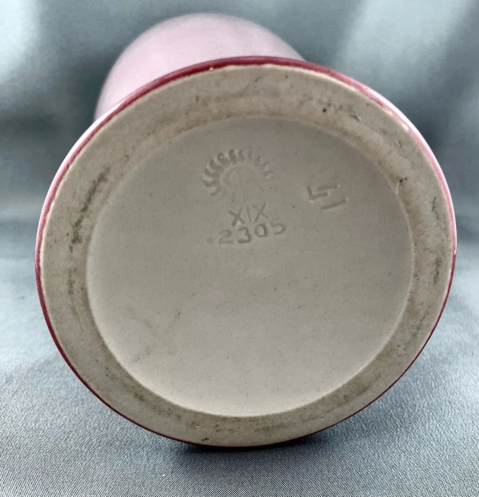 This lovely vase is an antique gem from Cincinnati, Ohio, USA and dates to 1919. Painted by Lorinda Epply, this vase features a rich deep pink hue and is beautifully accented with delicate white lotus flowers around the rim, making it a striking and uncommon Rookwood piece. Crafted from soft-bodied porcelain—a material Rookwood began using in 1915—this piece stands out from the company’s more common earthenware works. It is finished with Rookwood's Jewel Glaze, a high-gloss, translucent coating first officially introduced in 1920, though some records suggest it may have been in use as early as 1916. If so, this vase could be an early example of that experimentation. The glaze features delicate, bubble-like textures beneath the surface, visible only upon close inspection of the colored areas, creating a luminous, jewel-like effect with a soft, hazy finish. Typically applied to porcelain or white-bodied clay, the glaze lends the vase an ethereal, dreamlike aura—its misty surface veiling the pink body like a whisper of fog, imbuing the piece with a quiet, almost magical allure. This vase is a perfect addition to any collection, making it ideal for Rookwood enthusiasts, fine art collectors, interior designers seeking a timeless piece, or as a thoughtful gift for a special occasion or loved one. Condition – The vase has age-related wear but is structurally sound, with no visible cracks, chips, or crazing. Overall, it is in remarkable condition for an antique Rookwood vase. There is a hairline fracture that has been professionally restored and sealed to maintain the vase's structural integrity and preserve its appearance. Please refer to the photos for more details about the item's condition. The vase measures 4" (L) x 4" (W) x 9.5" (H). The shape of the vase #2305 was a variation of Shape 1667 with the top removed and was used on both porcelain and vellum-glazed vases. The vase weighs 1 pound and 15 ounces and has the traditional Rookwood markings. Rookwood Pottery, founded in 1880 by Maria Longworth Nichols Storer in Cincinnati, Ohio, is celebrated for its exceptional ceramic works and innovative glazes. The company became renowned for developing a variety of unique glazes, notably including its iconic Standard Glaze, Sea Green Glaze, Iris Glaze, and Vellum Glaze, among others, which contributed to its distinctive aesthetic. Noteworthy artists associated with Rookwood include Kataro Shirayamadani, known for his intricate designs, as well as Artur Van Briggle, Carl Schmidt, and Sara Sax, whose work played a significant role in shaping the company's artistic legacy. Rookwood’s commitment to fine craftsmanship and artistry established it as a leading American pottery manufacturer, with its vases, tiles, and sculptures remaining highly prized by collectors. Lorinda Epply (1874–1951) was a prominent American ceramic artist who contributed significantly to Rookwood Pottery from 1904 to 1948. Educated at the Cincinnati Art Academy and Columbia University, she became renowned for her mastery of glazes, particularly the soft pastels of the Jewel porcelain glaze . Her work, characterized by natural motifs and innovative forms, remains highly collectible and is featured in major museum collections, including the Saint Louis Art Museum and the Brooklyn Museum. Please note that all our vintage items are pre-loved and may show signs of wear and age. We strive to accurately describe each item's condition and any flaws, but please keep in mind that vintage items are not always in perfect condition. Our eco-friendly packaging ensures that your order arrives safely while minimizing its impact on the environment! If you have any questions, please don't hesitate to contact us. W e want you to be completely satisfied with your purchase and will do our best to provide you with all the information you need to make an informed decision.