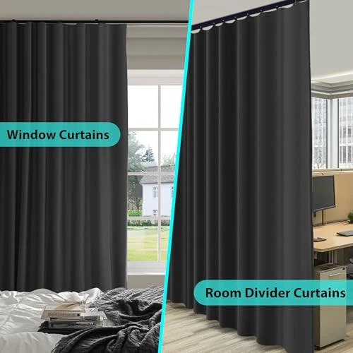 Room Dividerout Curtains Flexible Sliding Tracks 108"W x 96"L (Pack of 1) Black
