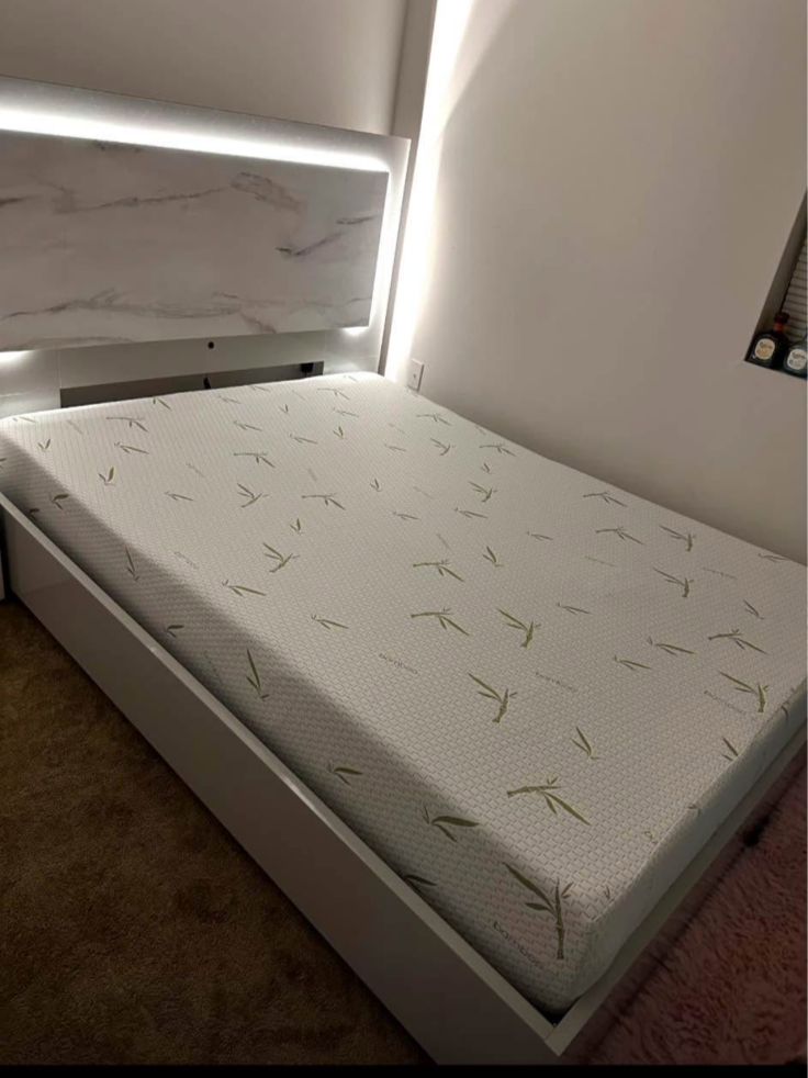 The "Rooms To Go Queen Bed Set" includes a queen mattress, bed frame, dresser, and nightstand, all in a stylish white color. The set is made of marble and is designed for a bedroom setting. With a total of 4 items in the set, this comprehensive package provides everything needed to furnish a queen-sized bedroom. Perfect for those looking to create a coordinated and elegant bedroom decor.