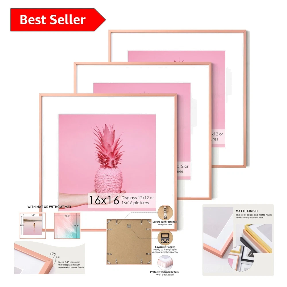 Rose Gold Metal Picture Frame 16x16 with 12x12 Mat - Set of 3 Elegant Displays ‹ › ‹ › ‹ › ‹ › ‹ › ‹ › ‹ › ‹ › ‹ › Rose Gold Metal Picture Frame - Set of 3 Elegant Displays Elevate your wall décor with our stunning 16x16 Rose Gold Metal Picture Frames, complete with a 12x12 mat, perfect for showcasing your cherished memories in a sophisticated manner. Features: Modern Design: Crafted from premium aluminum alloy, these lightweight yet sturdy frames are the perfect choice for enhancing your home aesthetic. High Definition Tempered Glass: Enjoy the clarity and protection of our high-quality tempered glass that minimizes bending, reflections, and scratches while ensuring utmost safety with polished edges. Versatile Display Options: Easily mount your frames vertically or horizontally with included hanging hardware, allowing you to maximize your display space. Safe Packing: Each frame is securely shrink-wrapped and reinforced with corner protectors, ensuring maximum protection during transit. Perfect Decoration & Gift: These frames complement various settings, making them ideal for homes, offices, hotels, restaurants, and as thoughtful gifts for family and friends. Benefits: Durable and chic design that seamlessly blends with your existing décor. Exceptional clarity and safety for your cherished photos. Easy to hang and reposition according to your needs. Arrives in perfect condition, ready to display your memories. Versatile for personal use or as a heartfelt gift. Why choose our Rose Gold Metal Picture Frames? Experience the perfect union of elegance and functionality with our Rose Gold Metal Picture Frames. Each frame is meticulously designed and handcrafted with high-quality materials, offering a perfect home for your favorite photos. The modern aesthetic, coupled with the practicality of tempered glass and versatile display options, makes these frames a standout choice. Whether for yourself or as a gift, indulge in the luxurious way to showcase your memories. Don't wait to transform your space—order your set of Rose Gold Metal Picture Frames today and bring your memories to life! Shipping Free & Fast Shipping - We offer free shipping to most of the USA with a normal delivery time of 3-7 days. However, due to the current situation, additional delivery time (up to 3 weeks) may be required for some items. Alternative Carriers - We may use alternative carriers (e.g. USPS, FedEx, UPS, etc.) to ensure your package arrives safely and on time. Due to the use of multiple carriers, we are unable to provide a tracking number automatically. Handling Time - Orders are processed and shipped within 1-2 business days of receiving cleared payment. Shipping Restrictions - Shipping to Alaska, Hawaii, Puerto Rico, Guam, and other US territories may incur shipping charges or delivery restrictions. Please contact us before ordering, or your order can be refunded/cancelled. State Restrictions - There may be restrictions based on your state of purchase. For example, certain items may not be shipped to California due to state regulations. Contact for Tracking Updates - If you require tracking updates or have any concerns about the delivery of your order, please feel free to contact us, and we will be happy to assist you. Return 30-Day Hassle-Free Returns - We want you to be completely satisfied with your purchase. If you are not, you can return the item within 30 days of receiving it for a full refund or exchange. Easy Return Process - To start a return, simply contact us and we will provide you with a prepaid return shipping label and detailed instructions. Restocking Fee - There are no restocking fees for returns. However, the buyer is responsible for return shipping costs if the return is not due to a seller's error. Refund Processing Time - Refunds will be processed within 5 business days of receiving the returned item in its original condition. Payment We accept all major credit cards, PayPal, and Apple Pay for your convenience. Your payment information is secure and encrypted to ensure a safe and seamless transaction. Please complete your payment within 3 days of purchase to avoid any delays in shipping. Feedback Your feedback is extremely important to us. We strive to provide the best products and customer service possible. If you are satisfied with your purchase, please take a moment to leave us a positive review. If you have any concerns or issues with your order, please contact us before leaving negative feedback. We are committed to resolving any problems and ensuring your satisfaction. Contact Us If you have any questions or concerns, please feel free to reach out to our customer support team. You can contact us through the eBay messaging system. We are available Monday to Friday, 9:00 am to 5:00 pm EST, and we will do our best to respond to your inquiry within 24 hours. Buy it now and enjoy a pleasant shopping experience! UPC: Not Set Item Height (Interior): Not Set Item Width (Interior): Not Set Item Weight: Not specified Unit Quantity: 3 Features: None,Modern Design,High Definition Tempered Glass,Vertical & Horizontal Display,Intact Parts & Safe Packing,Perfect Decoration & Gift Brand: Unbranded Item Height: 16x16 Picture Frame Item Length: 16x16 Picture Frame Item Width: 16x16 Picture Frame Type: Picture Frame Material: Aluminum Suitable for Photo Size: 12 x 12 in Color: Rose Gold Photo Capacity: 3 Theme: Animals Shape: Square Style: Modern Occasion: Mother's Day Pattern: Roses Mounting: Wall Mounted Character Family: Not Set Character: Not Set Size: 16 x 16 in MPN: Not Set Country/Region of Manufacture: Not Set Glass Type: Tempered Glass Year Manufactured: Not Set Department: Not Set Box Frame Depth: Not specified Finish: Brushed Photo Insertion Type: Not specified Orientation: Portrait Era: 21st Century (2000-Now) Power Source: Not applicable Manufacturer Warranty: Not Set Time Period Manufactured: Not Set Model: Not Set Unit Type: Unit Personalize: Not Se