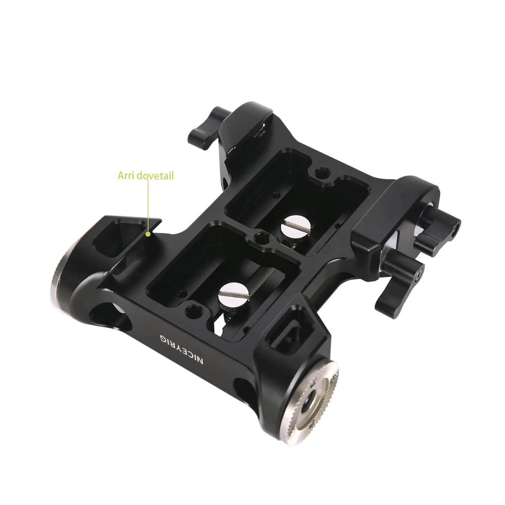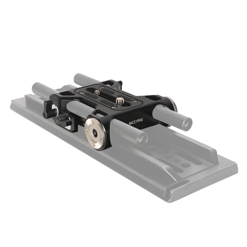 The 15mm rod baseplate with ARRI-type dovetail is specially designed for cinema camera, camcorder mounting on the ARRI bridge plate while tripod shooting.Easy to the equipment position front-and-back,and secured via a wingnut screw. With standard 60mm center distance of dual 15mm rod clamp,it allows you to expand rod support accessories such as follow focus, matte box, lens support, etc. Besides, the base plate features a rosette adapter on the each side, so you can attach rosette mount handles (Optional 253/256) to make a shoulder rig. What you get: 1 x ARRI dovetail baseplate 1 x 1/4’’-20 screw 1 x 3/8’’-16 screw Recommend Maximum Payload: 45 lb Product Weight: 0.85 lb Process: CNC, sandblasting, black anodizing Material: Aluminum alloy The 15mm rod base plate is dedicated for cinema camera, camcorder large equipment tripod shooting and shoulder rig shooting, recommend maximum payload 45 lb Allows front-and-back adjustment on the ARRI standard bridge plate, secure with a M5 wingnut screw Features rosette mount adapters to directly attach rosette handle set for camera shoulder rig system Can connect 15mm rods to expand rod support accessories such as follow focus, matte box, lens support bracket, 15mm rail block, etc. 1/4’’-20 threaded holes built-in on the bottom optional for riser height bridge plate installation