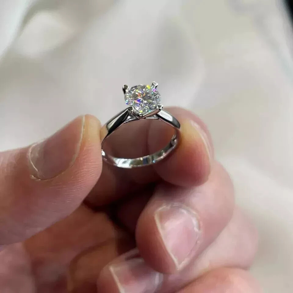 $ 51.482Ct Round Cut Natural Moissanite 14k White Gold Plated Wedding Ring for Women