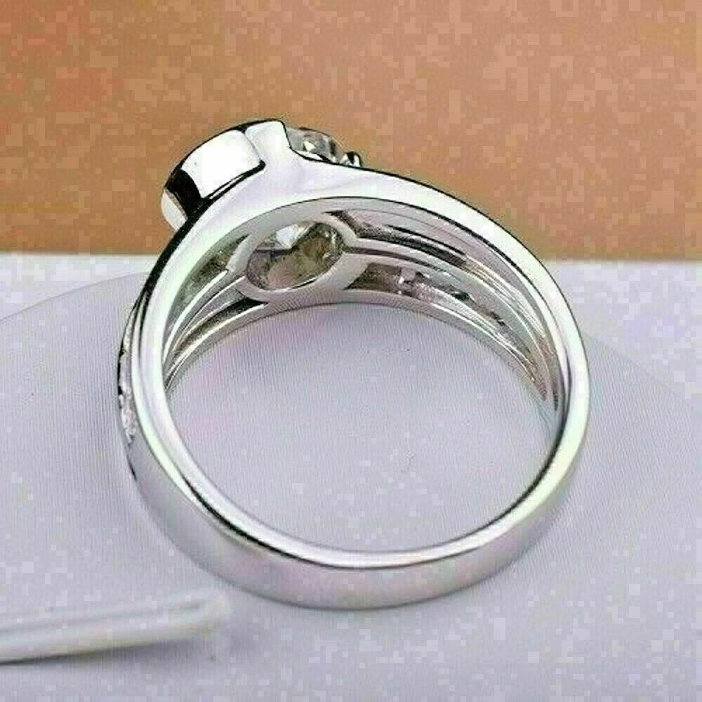 Round Cut Simulated Diamond Unisex Stunning Band Ring In 14k White Gold Plated