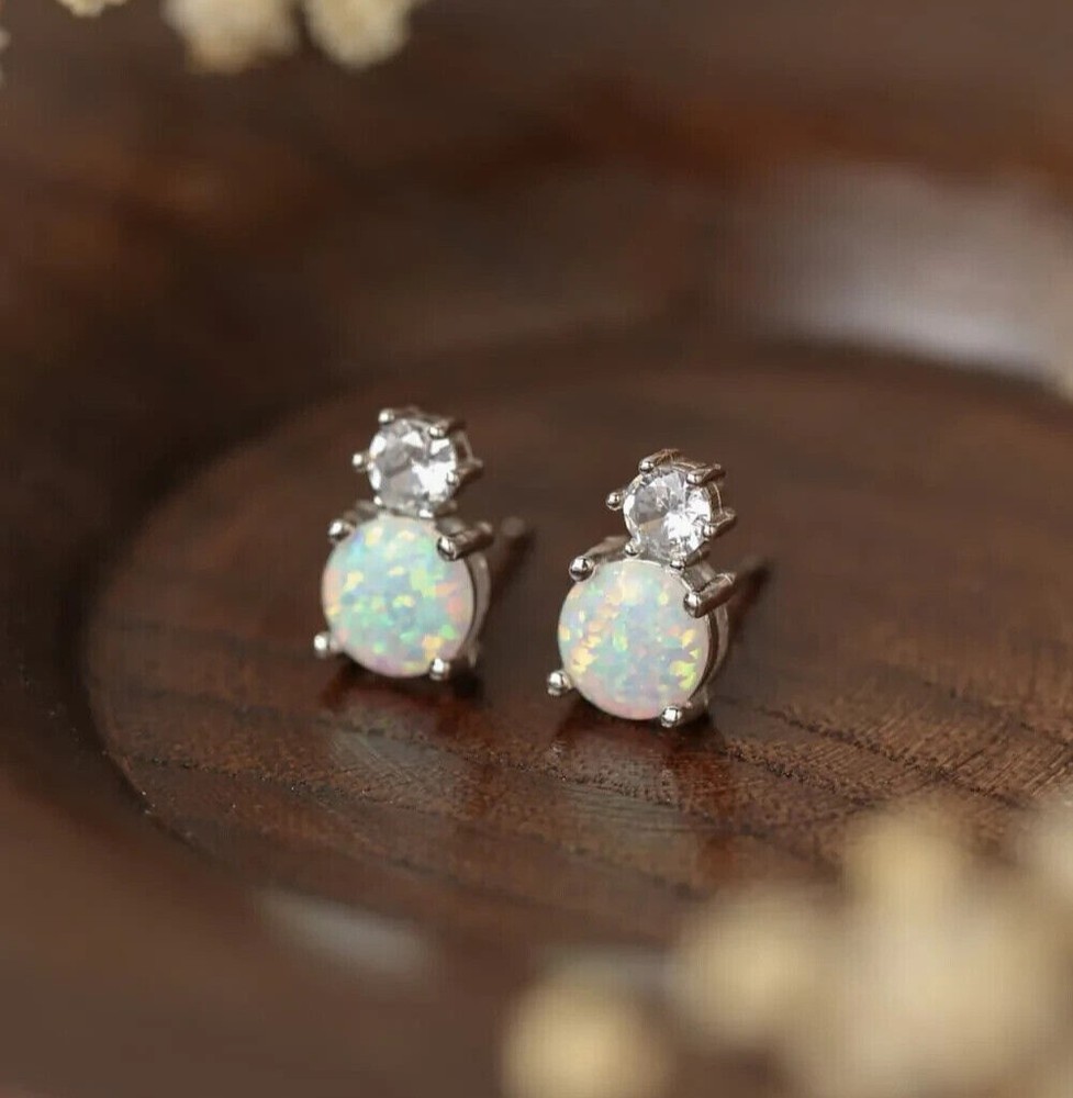 Style: Stud Theme: Beauty Metal: Sterling Silver Seller Notes: ““Freshly made on order with quality and buyer satisfaction. No old stocks.”” Metal Purity: 925 Main Stone Treatment: Not Enhanced Handmade: Yes Vintage: No Brand: sp_jewels Customized: Yes Personalize: No UPC: Does Not Apply Closure: Push Back Antique: No Base Metal: White Gold Plated Wholesale: Yes Shape: Round Main Stone Color: Multicolor Cut Grade: Excellent Secondary Stone: Simulated Diamond Occasion: Anniversary, Birthday, Christening, Christmas, Confirmation/Communion, Engagement, Graduation, Mother's Day, Valentine's Day, Wedding Country/Region of Manufacture: India Number of Gemstones: 2 Main Stone: Simulated Fire Opal Features: Engraved Era: Undated gtin13: Does Not Apply Setting Style: Prong Color: White Main Stone Shape: Round Country of Origin: United States Type: Earrings Signed: No MPN: NA Material: Stone, Metal, Gemstone Main Stone Creation: Simulated Ear Area: Lobe Seller Warranty: Yes