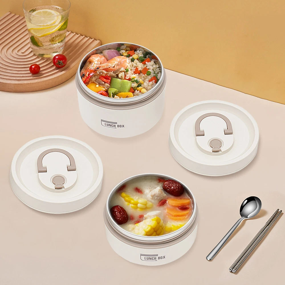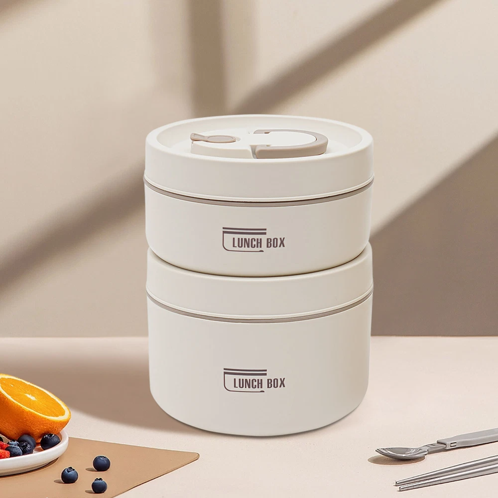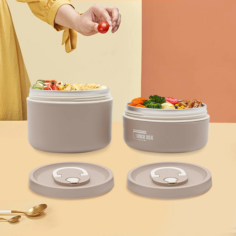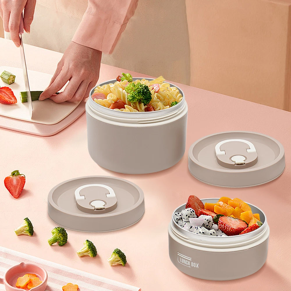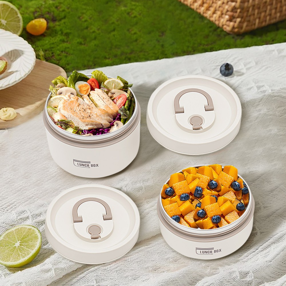 Round Lunch Box Portable Insulated Lunch Container Set Stainless Steel Bento Box
