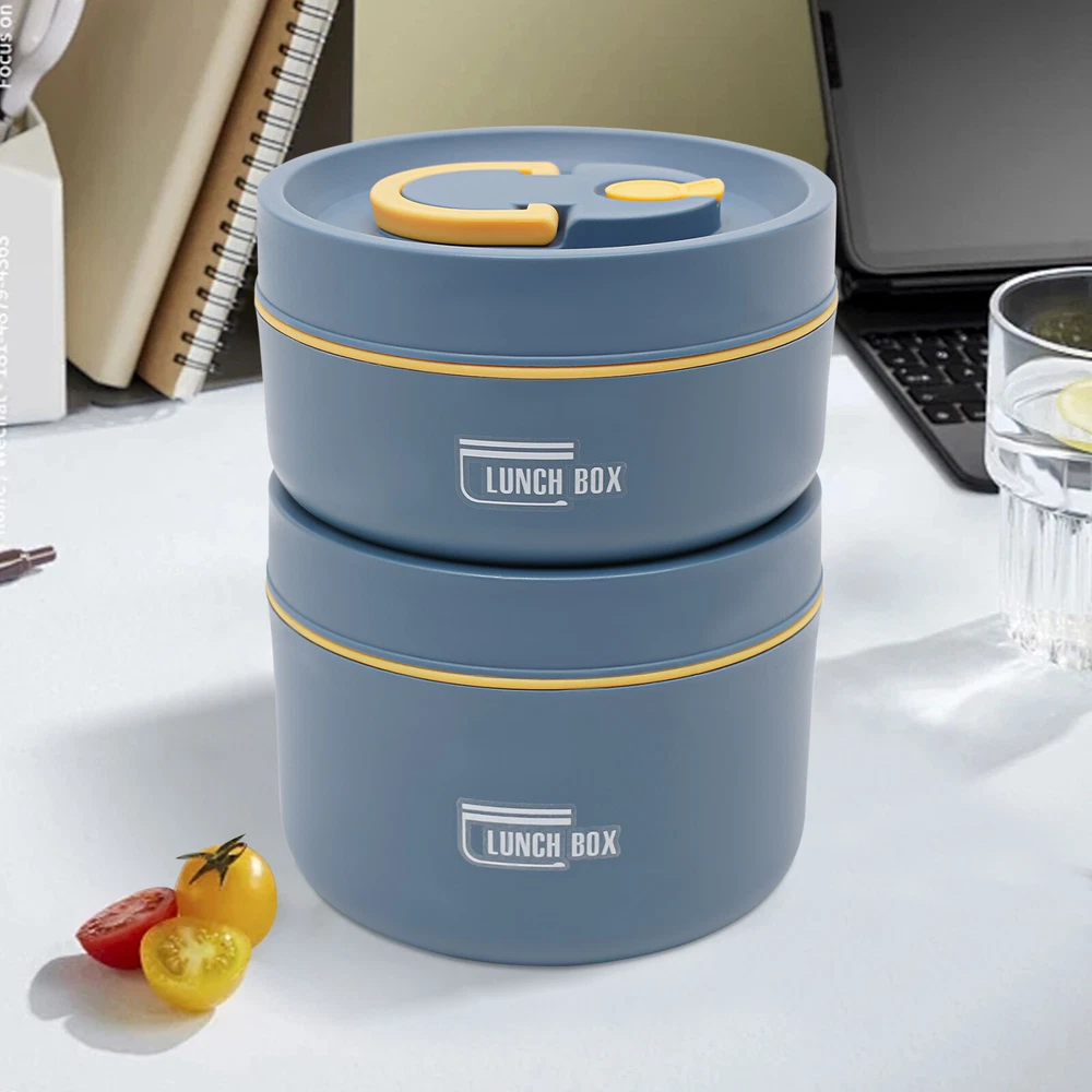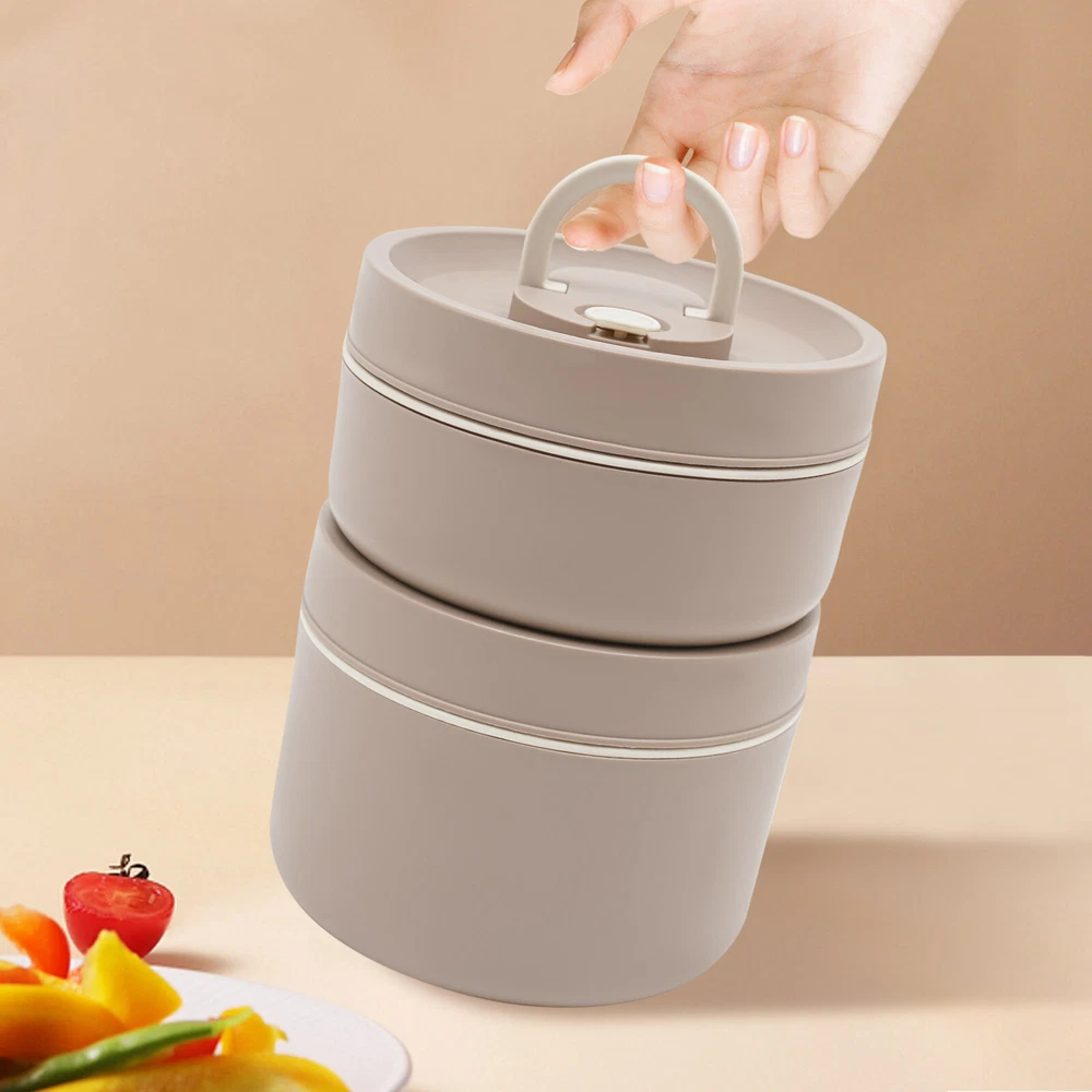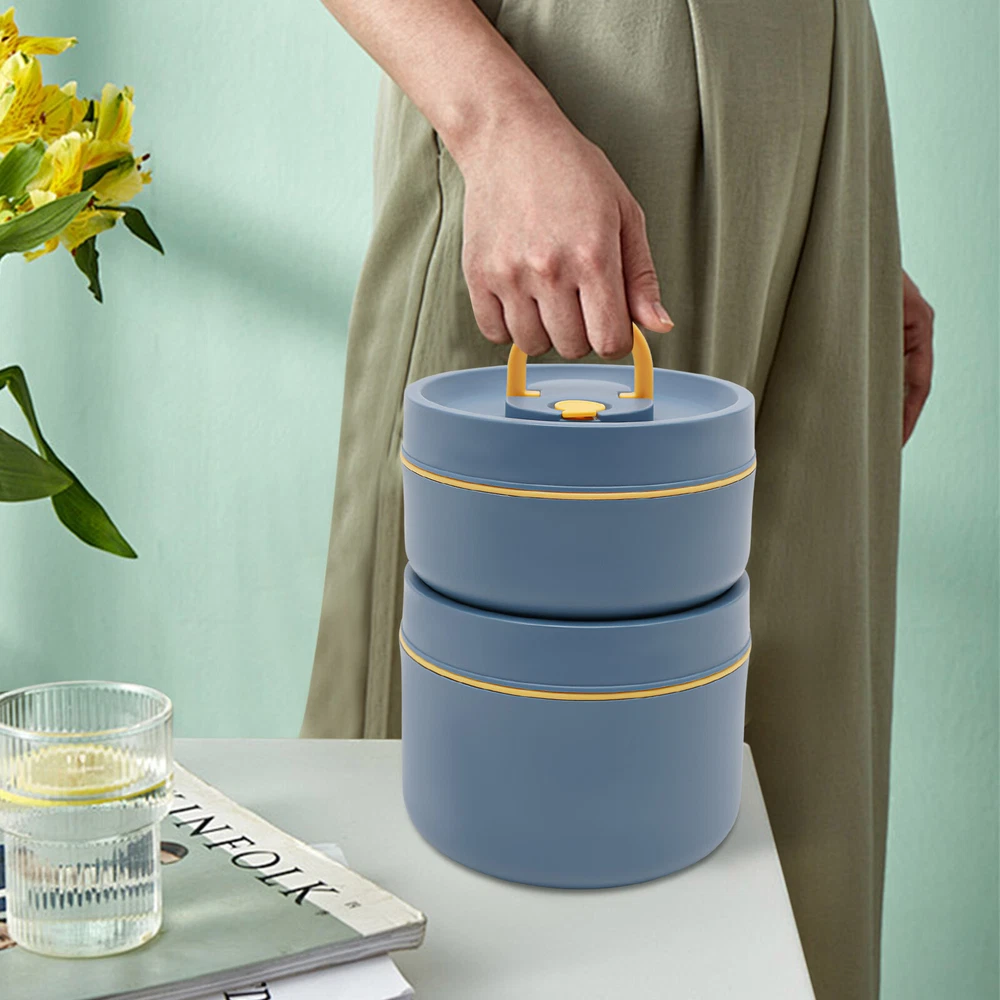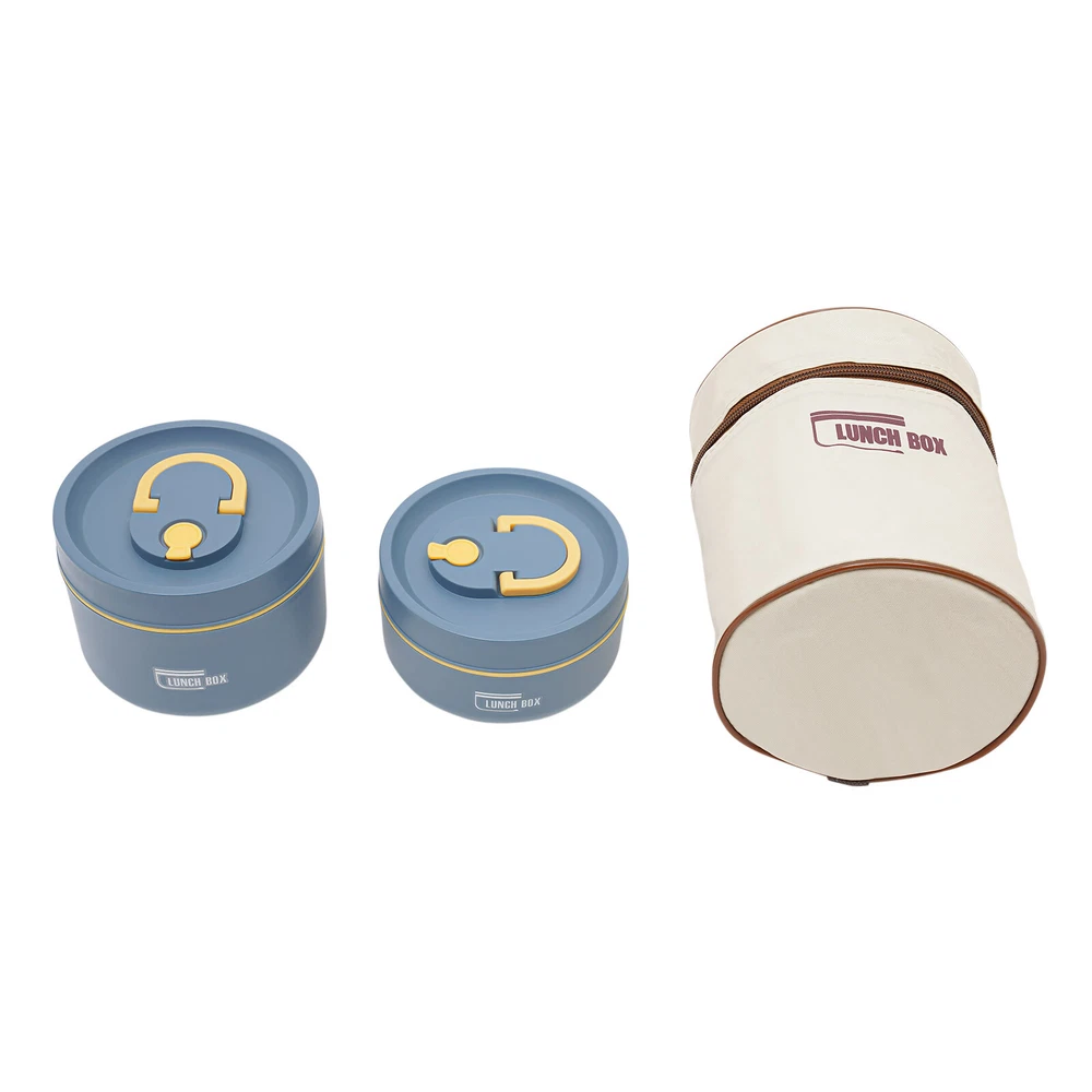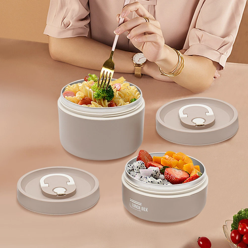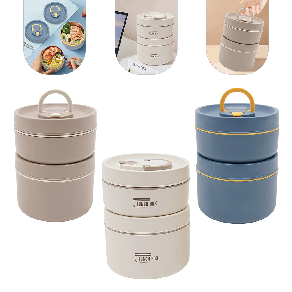 Round Lunch Box Portable Insulated Lunch Container Set Stainless Steel Bento Box