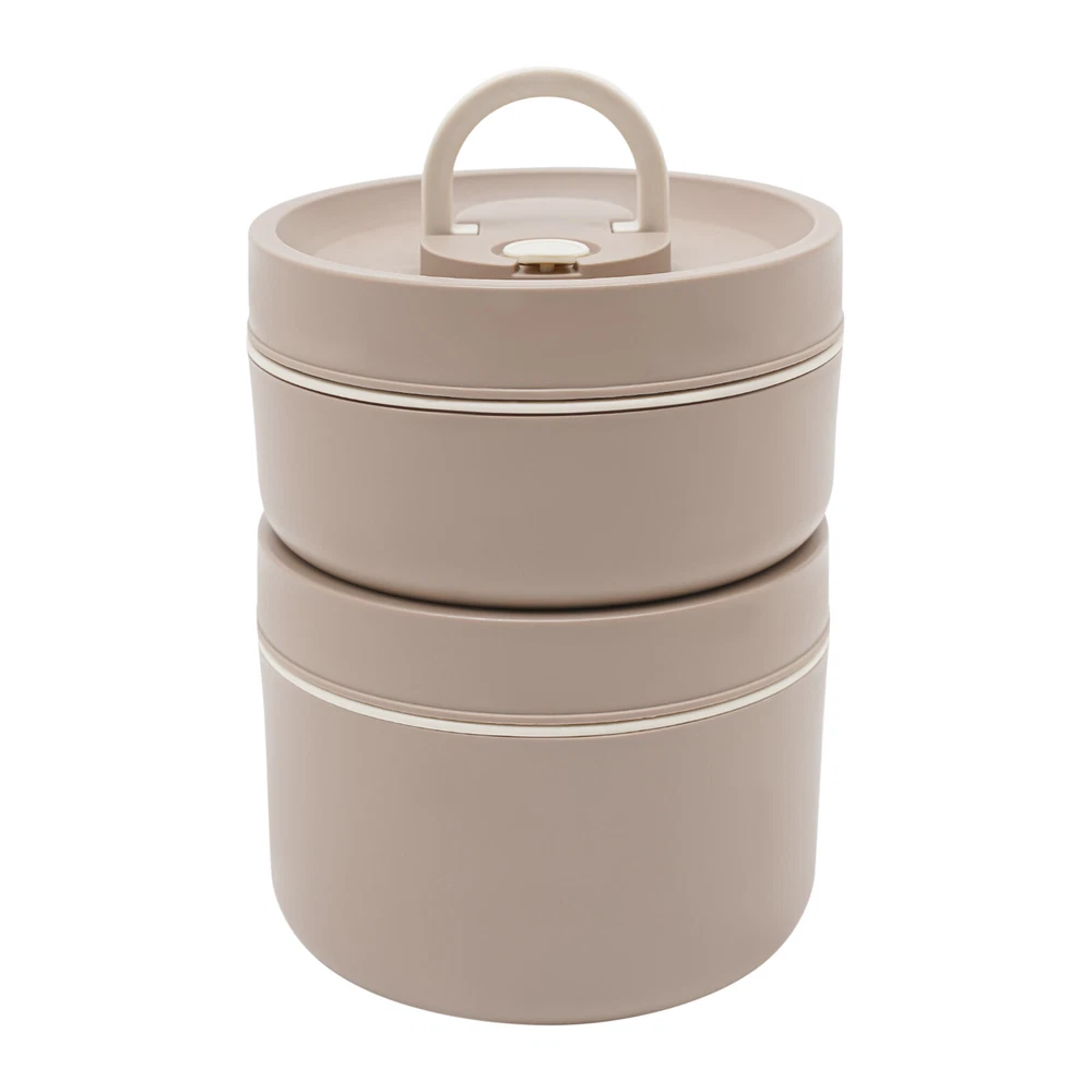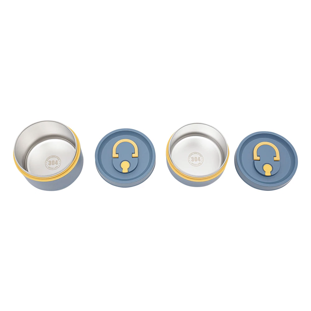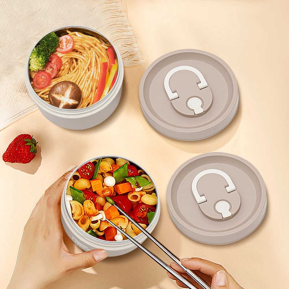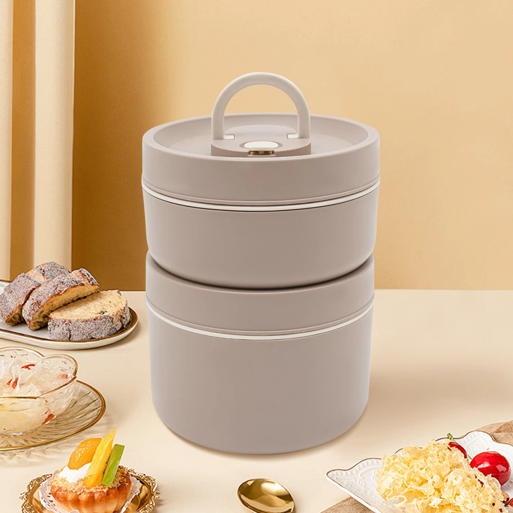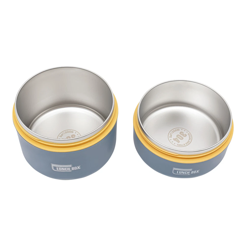 Round Lunch Box Portable Insulated Lunch Container Set Stainless Steel Bento Box