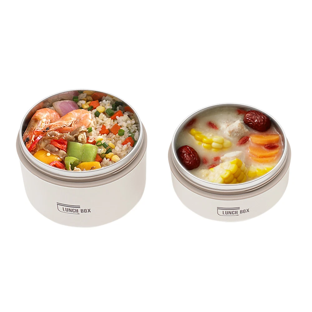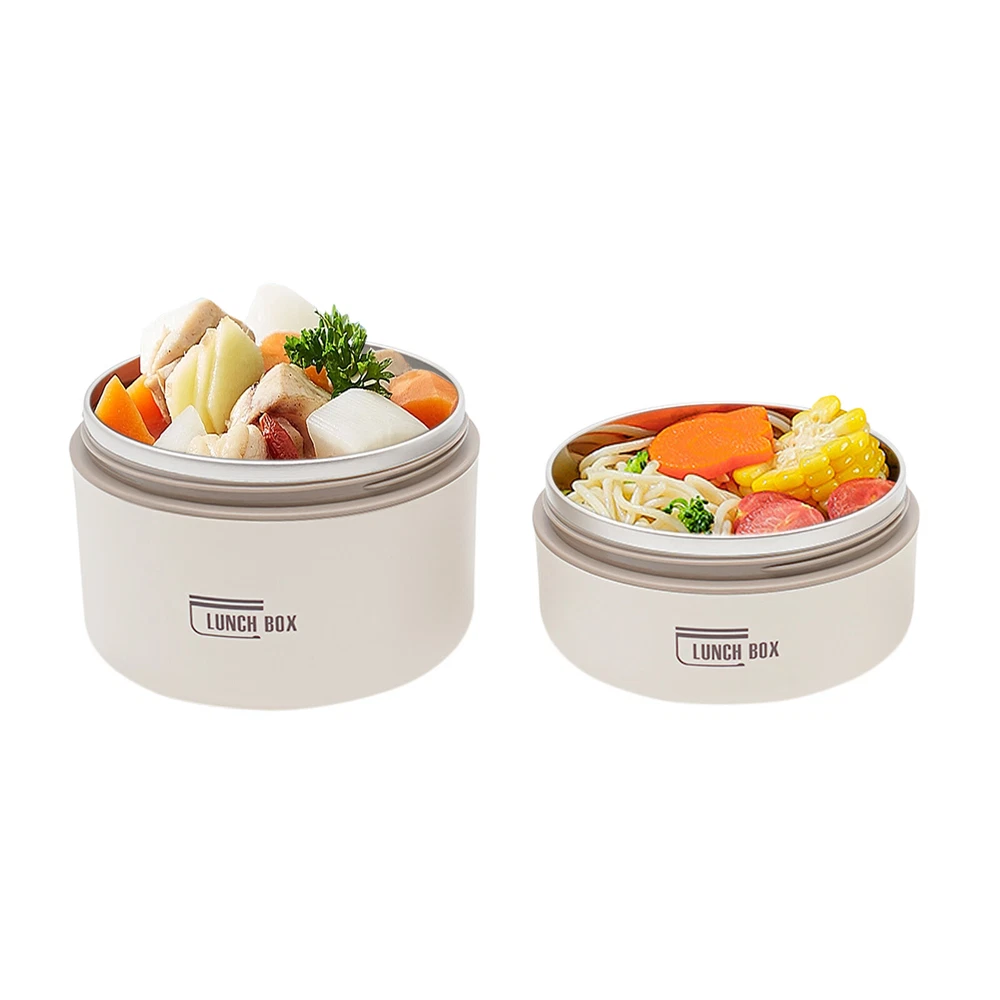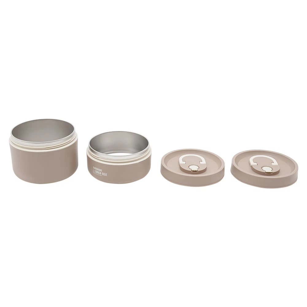 Application It enables you to prepare various foods for work, school, picnics, or camping, as well as nutritional meals for children or visiting patients. Specifications Color: Brown /Beige/Blue Shape: Round Style: Modern Number of Pieces: 2 Assembly Required: No Material: 304 Stainless Steel, PP, PU Foam Insulation Bag Material: Oxford Cloth, Pearl Cotton, PVC Aluminum Plated Film Heat Preservation Time(With the Insulation Bag): About 2.5-3 Hours(Food), 4 Hours(Boiled Water) Capacity: 620ml/0.56Qt (Bigger One), 420ml/ 0.38Qt (Smaller One) Gross Weight: 0.5kg/1.1 lbs Net Weight: 0.41kg/0.9 lbs Overall Product Size(D*H): 13.5*18cm/5.31*7.08 in Packaging Size: 19*14*14cm/7.48*5.51*5.51 in Package Included 2* Lunch Boxes 1* Insulation Bag Round Lunch Box Portable Insulated Lunch Container Set Stainless Steel Bento Box Description This lunch box is a good choice when you want to eat healthier or enjoy different foods more easily at work. It is made of high-quality materials, sturdy, safe, and durable. With a sealed lid, it is leak-proof , so you can use it confidently. Its lightweight, compact size and portable handles allow you to easily take it around. With it, you can prepare delicious food for your kids, family, and loved ones. Key Features Sturdy and Durable: The product is made of high-quality 304 stainless steel and PP, using a one-color silkscreen process, with high strength, wear resistance, non-toxic , and long service life Powerful Insulation: Its stainless steel inner liner, PU foam interlayer, and thermal insulation bag allow it to keep food warm for up to 2.5-3 hours and keep boiled water for 4 hours, so you don't have to worry about the food quickly becoming cold. Large Capacity: The bigger bowl can hold up to 0.56Qt and the smaller bowl can hold up to 0.38Qt of meals, catering for all your meal sizes. You can also feel free to mix and match, using different sizes of bowls to portion out rice, stir-fries, stews, fruits, and more to get a nutritionally balanced diet. Easy to Carry & Store: Its lightweight ( 0.9 lbs ), compact size ( 5.31*7.08 in ), and practical handles allow you to easily store and carry it to different places. You can keep your fitness and nutrition goals by using this item to take healthy meals and snacks wherever you go. Sealed and Spill-pro of : The sealed lid with silicone sealing ring and the design of spiral tightening not only prevents the soup from spilling but also enhances the heat preservation effect. Effortless Cleaning: The simple structure, removable lid, and smooth surface allow you to easily clean it with a wet wipe, water, and mild cleaning agent . Space-saving: Its stackable design allows you to place them on top of each other, saving you even more space. Beautiful Appearance: The pleasing brown tone with smooth lines and simple style make this item modern and fashionable. Nice Gift: This practical and beautiful product is a great holiday or housewarming gift for family, friends, and lovers so that they can enjoy a more convenient life. Details Ventilation Hole: It makes it easy to open the lid when the pressure inside the box is high. Double Zip Design: It is convenient for you to open and close the insulation bag . Application It enables you to prepare various foods for work, school, picnics, or camping, as well as nutritional meals for children or visiting patients. Specifications Color: Brown /Beige/Blue Shape: Round Style: Modern Number of Pieces: 2 Assembly Required: No Material: 304 Stainless Steel, PP, PU Foam Insulation Bag Material: Oxford Cloth, Pearl Cotton, PVC Aluminum Plated Film Heat Preservation Time(With the Insulation Bag): About 2.5-3 Hours(Food), 4 Hours(Boiled Water) Capacity: 620ml/0.56Qt (Bigger One), 420ml/ 0.38Qt (Smaller One) Gross Weight: 0.5kg/1.1 lbs Net Weight: 0.41kg/0.9 lbs Overall Product Size(D*H): 13.5*18cm/5.31*7.08 in Packaging Size: 19*14*14cm/7.48*5.51*5.51 in Package Included 2* Lunch Boxes 1* Insulation Bag Notes Please note that this product cannot be heated in a microwave oven and is also recommended not to be cleaned in a sterilizer or dishwasher. Please check the size carefully before ordering. Please wash the inside of the lunch box with a soft cloth and detergent diluted with warm water before first use. Please do not use alkaline bleach, metal cloth, chemical cloth, etc. Please clean it and keep it dry for a long time use. Please do not contact with salt-containing substances (or other acidic or alkaline substances) such as sauces and soups for a long time to avoid rusting. Please allow the slight color difference caused by the shooting light and 1-3cm error due to manual measurement, and make sure you do not mind before you order. Payment Delivery details Terms of sales About us Contact us Payment We accept ebay payment 。 Fees such as import duties, taxes are not included in the item price or shipping costs. These charges are the buyer's responsibility. Delivery details Shipping: 2-9 working days to: USA Terms of sales We maintain high standards of excellence and strive for hundred percent customer satisfaction. Feedback is very important to us. We hope that you contact us immediately before you give neutral or negative feedback, so that we can address your concerns. It is impossible to address issues if we do not know about them! About us Your satis faction is our ultimate goal. We work hard to earn your trust and future business. Our certified technicians have tested each item before shipping. The unit comes with 1 year limited warranty on all manufacturing defects. a) If you receive a defective item, you may return it or ask for a discount. Please contact us within 14 days after you receive the package. b) What you returned must be intact and in its original packaging as re? u. Customer is responsible for shipping costs of the returned item. c) We will cover the cost of shipping back t with the shipping rate indicated in the registration page. We will send you a new unit or refund the fu