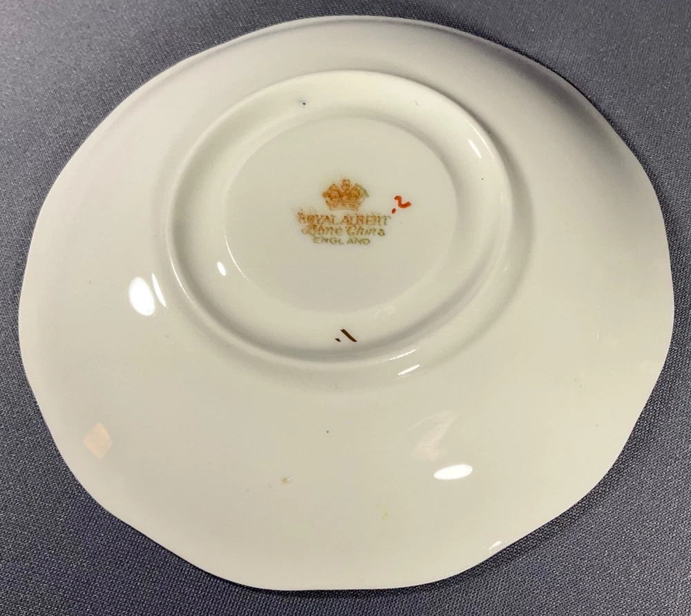 Excellent condition cup and saucer set in the Royal Albert "Heirloom" bone china pattern. This is the second of two identical cup and saucer sets we are offering in this pattern. Please see our other listings. We will be happy to combine shipping. The cup measures 2-3/8" tall from tabletop to rim and has a diameter of 3-1/8" across the rim. The saucer measures 4-7/8" in diameter. Marked on the bottom "Royal Albert Bone China England." No cracks, chips or wear of any kind. Pieces ring when tapped. have a liberal return policy. If you buy it and don't like it, send it back at your expense for a full refund minus a restocking fee if you comply with the following terms: Within five days of receipt, notify me that you want a refund. The item must be postmarked for return within five days of notification. The item must be returned in the same condition in which it was sent. No partial refunds. You forfeit your high bid on an item if payment is not received by ten days after auction's close and the item will be offered to the next-highest bidder. Buyer prepays plus shipping (and insurance, if desired). Reimbursement for lost or damaged (insured) items will occur after settlement of claim with carrier.