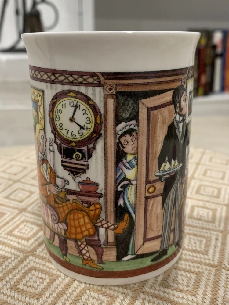 Step into the whimsical world of British humor with this amusing Royal Grafton mug. The comic illustrations of a butler and guests add a dash of character to your tea time. This mug serves not only as a beverage holder but also as a conversation starter, brimming with charm. • Fine bone china • Intricate comic design • Comfortable handle • Made in Staffordshire, England Please see all photos as they are part of the description. Always open to reasonable offers! Jewelry is never cleaned as we want to preserve its timeless beauty and aging. Vintage items tell a story and we would like you to see that story. It also allows the new owners to clean in a way that is right for them.