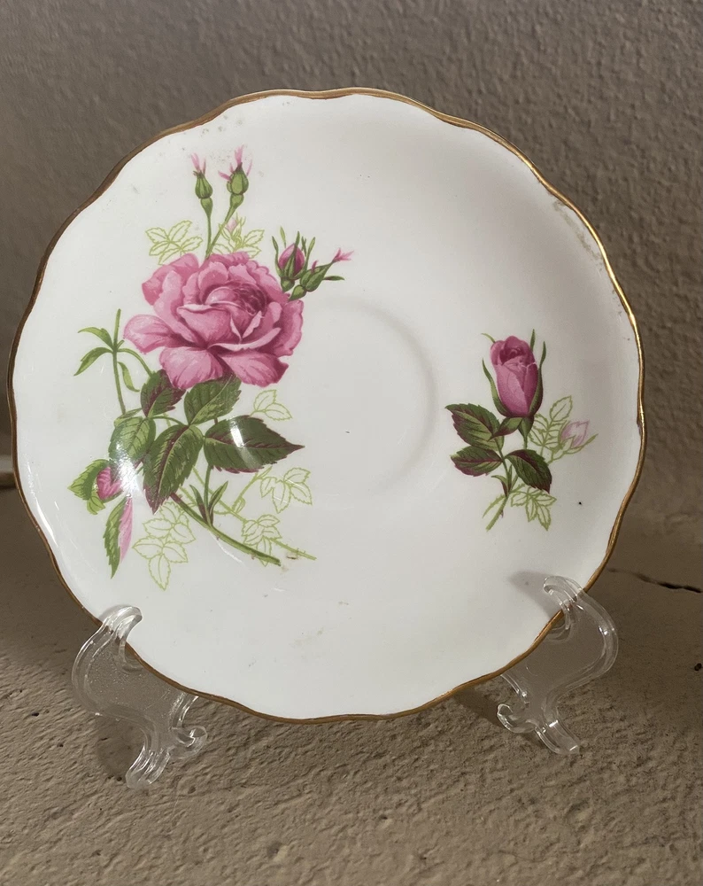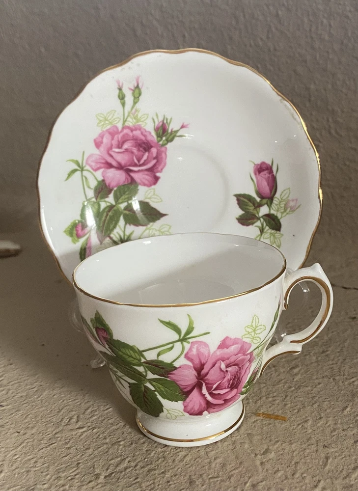 The Royal Vale Large Pink Rose teacup set is a vintage collectible made of delicate Bone China. Adorned with a charming Roses pattern in a soft pink hue, this elegant set is perfect for adding a touch of sophistication to any tea time or dining experience. The Royal Vale brand is known for its quality craftsmanship and timeless designs, making this teacup set a beautiful addition to any kitchen or home decor collection.