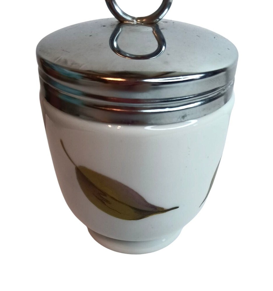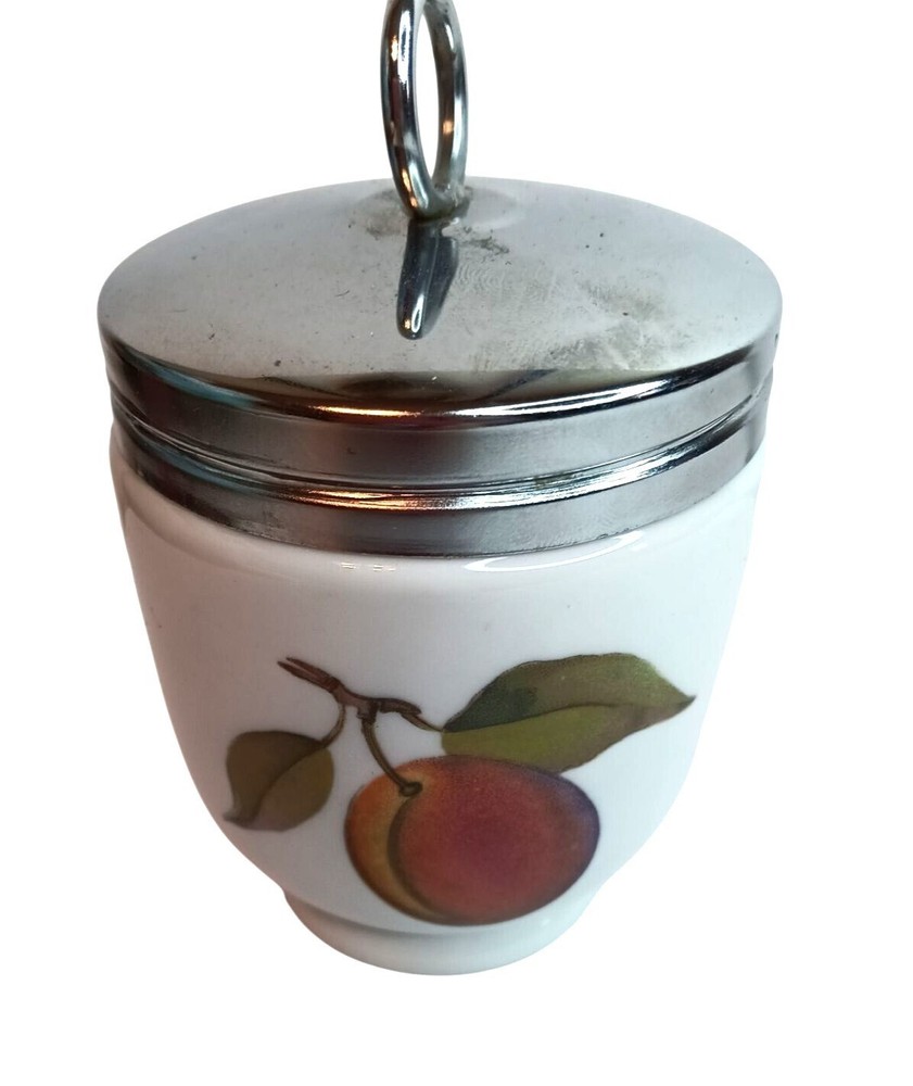 This elegant Royal Worcester egg coddler makes breakfast feel luxurious! The beautiful berry and peach Evesham pattern is perfect for collectors or anyone who loves charming tableware. Sturdy, vintage-inspired, and just the right size for a soft-cooked egg—so cute and functional! Arrived safely packed and looks even better in person. A lovely little treasure for my kitchen!