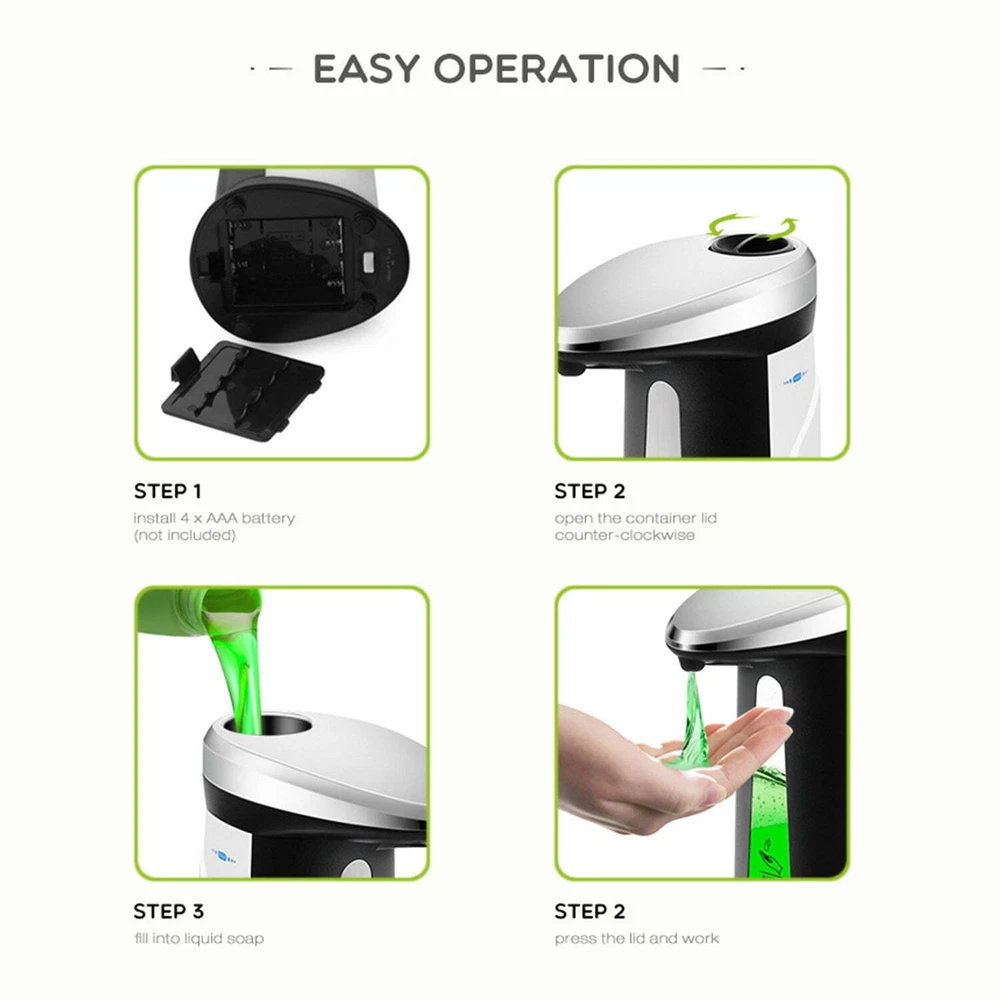 HOT SALES !!! ⭐ BUY MORE SAVE MORE ✅FAST DELIVERY Home High Security Child Safety Door Lock Childproof Door Reinforcement Lock New 10.57 USD Free shipping 3 Pack Stainless Steel Scissor Tongs, Kitchen Tongs for Cooking Food Tongs BBQ 11.49 USD Free shipping 6pcs Metal Hanger Space Saving Hanger Magic Rack Loop Slots Closet Organizer 12.57 USD Free shipping Electric Dumpling Maker 2 Mode Automatic Dumpling Maker Rechargeable Dumpling 22.45 USD Free shipping Bluetooth Headset TWS Wireless Earbuds Headphone Noise Cancelling Waterproof USA 7.95 USD Free shipping Ear Wax Removal Tool Kit Ear Wax Remover Irrigation Cleaner Bottle Flush System 15.72 USD Free shipping 800W 2Channel bluetooth Mini HIFI Power Amplifier Audio Stereo Amp Home Car FM 21.59 USD Free shipping Rtmgob Automatic Soap Dispenser 350ml for Bathroom Kitchen Liquid Soap Dispenser The automatic soap dispenser has built-in infrared auto-sensing for touch-free, germ-free, healthy hand washing. Fully automatic no-touch operation helps avoid cross-contamination, and using an automatic soap dispenser is the most effective way to tell children that hand washing is the most effective way to help avoid cross-contamination. It is widely used in kitchens, or offices, schools, hospitals, hotels and restaurants. Size - 5.3" x 3.4" x 7.4" Battery Power - 4 * AAA (not included) Infrared Sensing - Automatic soap dispenser uses infrared motion sensor technology to dispense soap into your hand or dish sponge. With the hands-free, non-contact soap dispenser, you can wash your hands or dishes without touching the soap bottle, making it more hygienic. 14oz/350ML Large Capacity - The extra-large bottle has a very large capacity to avoid frequent liquid additions. 300ML large capacity can be used for up to a season once filled, and liquid can be dispensed up to 9,000 times. Liquid Production Stability - High efficiency motor, the liquid is very stable, within 0.25s can quickly discharge the liquid, no clogging. Wide Range of Applications - Stylish looking automatic soap dispenser matches perfectly with any kitchen or bathroom decor and is suitable for bathrooms, kitchens, offices, schools, airports, hospitals, kindergartens, hotels and other public places. Package Includes - Automatic Soap Dispenser x1 (Battery not included) Please read the following notes before completing order Please check your shipping address carefully before checkout, it can't be changed if order completed. Ship within 1 business day once payment completed. Notification of shipment with tracking No. will be sent to buyer. Feedback We will leave POSITIVE FEEDBACK after receiving the payment. Please contact us if you are not satisfied with the item after receive it. If you are dissatisfied for any reason, please donot be quick to leave negative/neutral feedback. We work hard to make sure EVERY CUSTOMER 100% SATISFIED and resolve any problem for you and always leave positive feedback to all our customers. Serious Buyer Only! Please place bid only if you agree with all the terms. About Return Note: For your best shopping experience in our store and saving your time. Please Do Not click "Return this item" except that you just don't need it any more. Because "return request" can't help you to solve the problem efficiently, it may takes a little longer time for u to get a reply due to we check with our "return request" every 2 days. that is the fastest way to solve any problem for you (We may respond a day later if you contact us at Saturday).You will receive helpful and practical solution through the communication between us. Refunds given only if item DOA and cannot be replaced via PAYPAL . If so, Please reported within 5 days and return to us within 30 days from the delivery date for exchange or refund. If you need return, please check twice to confirm the item not work and contact our customer service representative, let us know the detailed problem and send us some pictures for confirmation. Then get a unique address for return. BIG DEAL!!! ⭐Come and Get Your Love!!✅ 5-20Pcs Clear Plastic Ball Baubles Sphere Fillable Christmas Ornament Craft Gift 4.97 USD Free shipping Personalised Embroidered Xmas Stocking Luxury Santa Sack Christmas Colour USA 7.95 USD Free shipping