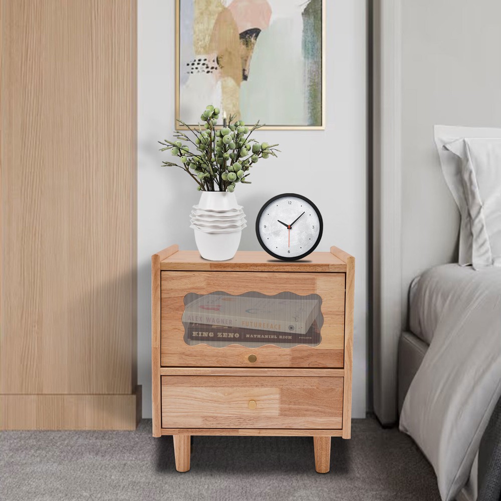 43.5*40*48cm Rubberwood Bedside Cabinet Bedroom Storage Cabinet With 2 Drawers Description This bedside cabinet is not only sturdy and durable but also thoughtfully designed and powerful. 2-tier design allows you to sort various jewelry, cosmetics, etc., and the external open space can also hold other items such as lamps, books, and cups. The raised legs and sturdy construction allow this product to hold up to 33.07 lbs. With this product, you can create a neat and cozy bedroom environment. Key Features Sturdy and Durable : Premium rubberwood, glass, and exquisite painting process make this product environmentally friendly , safe, wear-resistant , corrosion-resistant , and less prone to rusting, so it can maintain aesthetics and practicality for a long time. User-friendly Design : Suitable height(18.9in), drawer design and open storage make it easy to access items and easy to use. A flip-top cabinet door design makes it easier to open and close without taking up space. Raised legs(3.15in) provide better product stability, promote air circulation, reduce moisture, and make it easier for you to clean the bottom. Storage Assistant: 2-tier design provides plenty of space for sorting and storing various items such as documents, books, cosmetics, toiletries, etc(all not included). The large platform at the top can be used to hold a printer, storage baskets, and other supplies, creating a neat and organized environment. Suitable Weight Capacity : 4 raised legs, rectangular construction, and sturdy material make this product hold up to 33.07lbs, so you can rest assured that you can place some bedside items. Space-saving: With its cuboidal structure and vertical design, this product has a small footprint(17.1*15.7 inches) and can be placed in different corners to create a tidy space. Ideal Gift : Beautiful appearance and practical function make it can be a housewarming gift for friends. Easy to Install : The simple structure, pre-drilled holes, and complete accessories allow you to complete installation and start using it in a short period. Versatile Appearance : It adopts a classic log color design that can match most decorating styles and color themes, which is suitable for most use scenarios without limitations. Effortless Cleaning : The smooth surface and heightened bottom make cleaning a breeze. All you need to do is wipe the surface with a damp cloth. Protective Packaging : To prevent as much as possible damage to the product during transport, this product is packaged with foam and bubble bag that can effectively resist normal crushing and dropping. Details Visible Window : The clear glass design of the drawer door makes it easy for you to view the contents inside for easy access. Anti-slip Feet : The four feet with anti-slip pads provide greater stability for the product and protect the floor from wear and tear. Handle : It provides a comfortable and safe touch, making it easy for you to push and pull the drawers. Guardrail: The top raised guardrail effectively prevents items from slipping. Application It is suitable for indoor places such as the living room, office, bedroom, and cloakroom. It can be used as a bedside table, sofa side table, or storage cabinet for storing cosmetics, books, newspapers, magazines, cups, sundries, etc. Specifications Material: Rubberwood, Glass Color: Log Color Style: Modern Shape: Rectangular Mounting Type: Floor Standing Surface Treatment: Painting Assembly Required: Yes Number of Tiers: 2 Bearing Capacity: 15kg/33.07lbs Base Height: About 8cm/3.15in Product Size: 43.5*40*48cm/17.1*15.7*18.9in Package Included 1* Bedside Cabinet All Accessories for Assembly Notes Please confirm the installation dimensions before purchasing. Please avoid soaking this product in water and exposing it to sunlight. Please allow the slight color difference caused by the shooting light and 1-3 cm error due to manual measurement, and make sure you do not mind before ordering. Payment Delivery details Terms of sales About us Contact us Payment We accept ebay payment 。 Fees such as import duties, taxes are not included in the item price or shipping costs. These charges are the buyer's responsibility. Delivery details Shipping: 2-9 working days to: USA Terms of sales We maintain high standards of excellence and strive for hundred percent customer satisfaction. Feedback is very important to us. We hope that you contact us immediately before you give neutral or negative feedback, so that we can address your concerns. It is impossible to address issues if we do not know about them! About us Your satis faction is our ultimate goal. We work hard to earn your trust and future business. Our certified technicians have tested each item before shipping. The unit comes with 1 year limited warranty on all manufacturing defects. a) If you receive a defective item, you may return it or ask for a discount. Please contact us within 14 days after you receive the package. b) What you returned must be intact and in its original packaging as re? u. Customer is responsible for shipping costs of the returned item. c) We will cover the cost of shipping back t with the shipping rate indicated in the registration page. We will send you a new unit or refund the full payment you paid. Thank you. Contact us Business Hour Business Hour: Monday To Friday: 8:30 AM to 5:00 PM (Beijing China time) Due to time zones, our reply to your questions may not be immediately. But within above working time, we will reply your email within 24 hours. If it's non-workdays, please kindly be patient and wait till Monday. Please contact us with ebay message. Please feel free to contact us if you have any questions. Monday To Friday: 8:30 AM to 5:00 PM (Beijing China time) Due to time zones, our reply to your questions may not be immediately. But within above working time, we will reply your email within 24 hours. If it's non-workdays, please kindly be patient and wait till Monday. Please contact us with ebay message. Please feel 