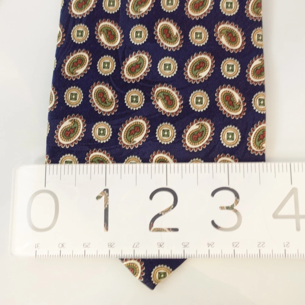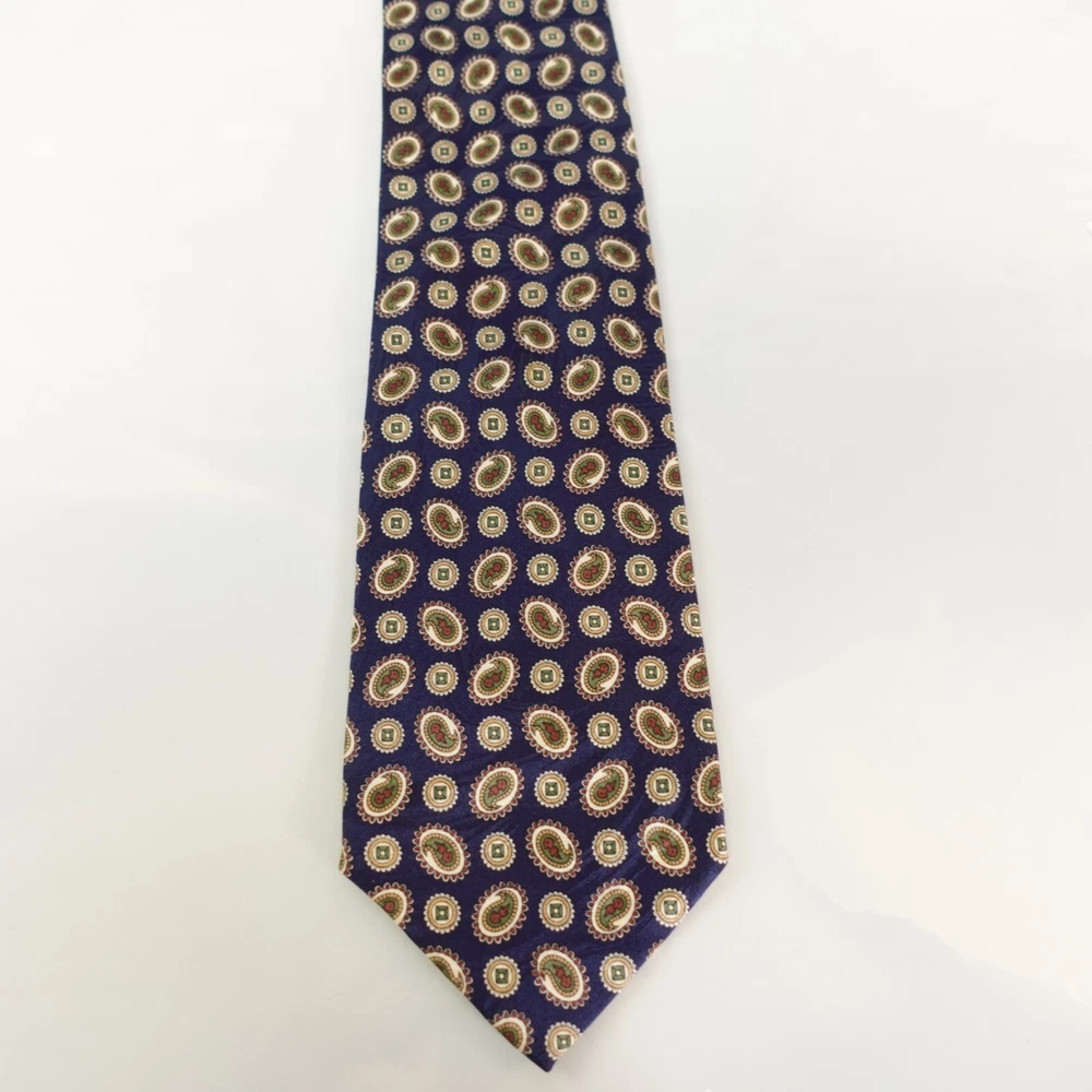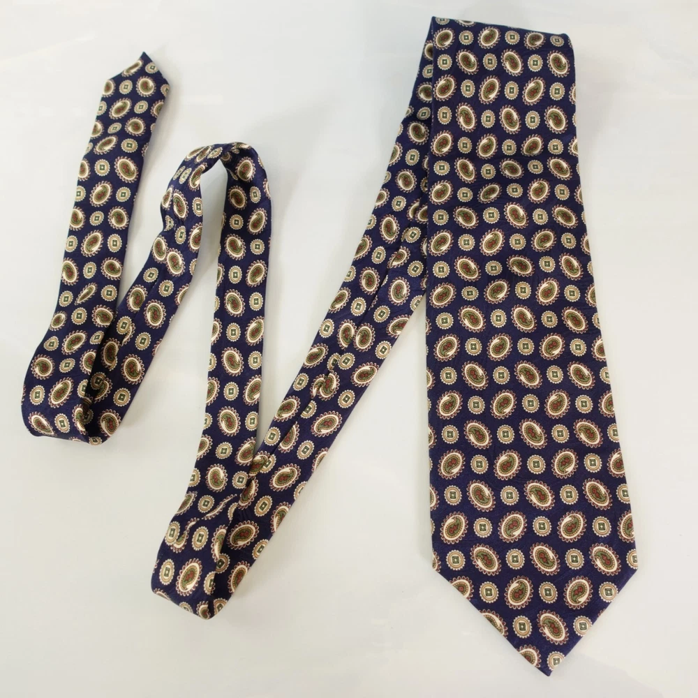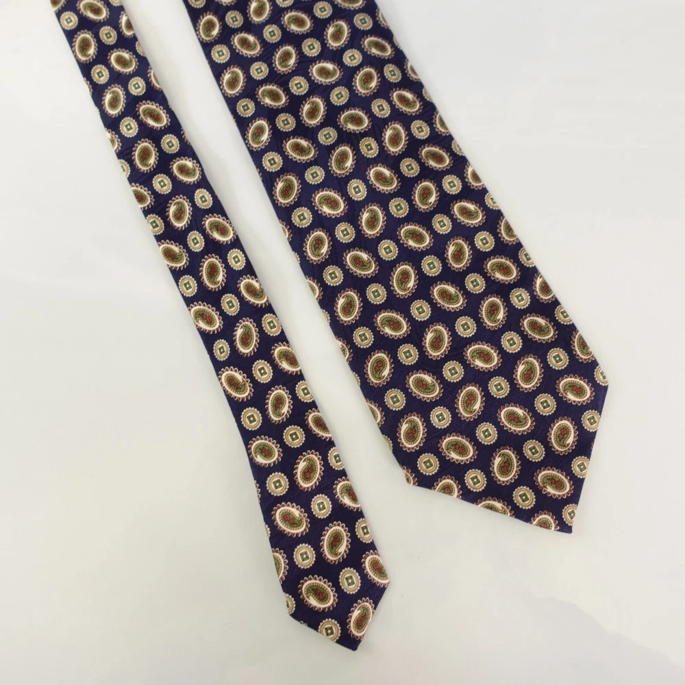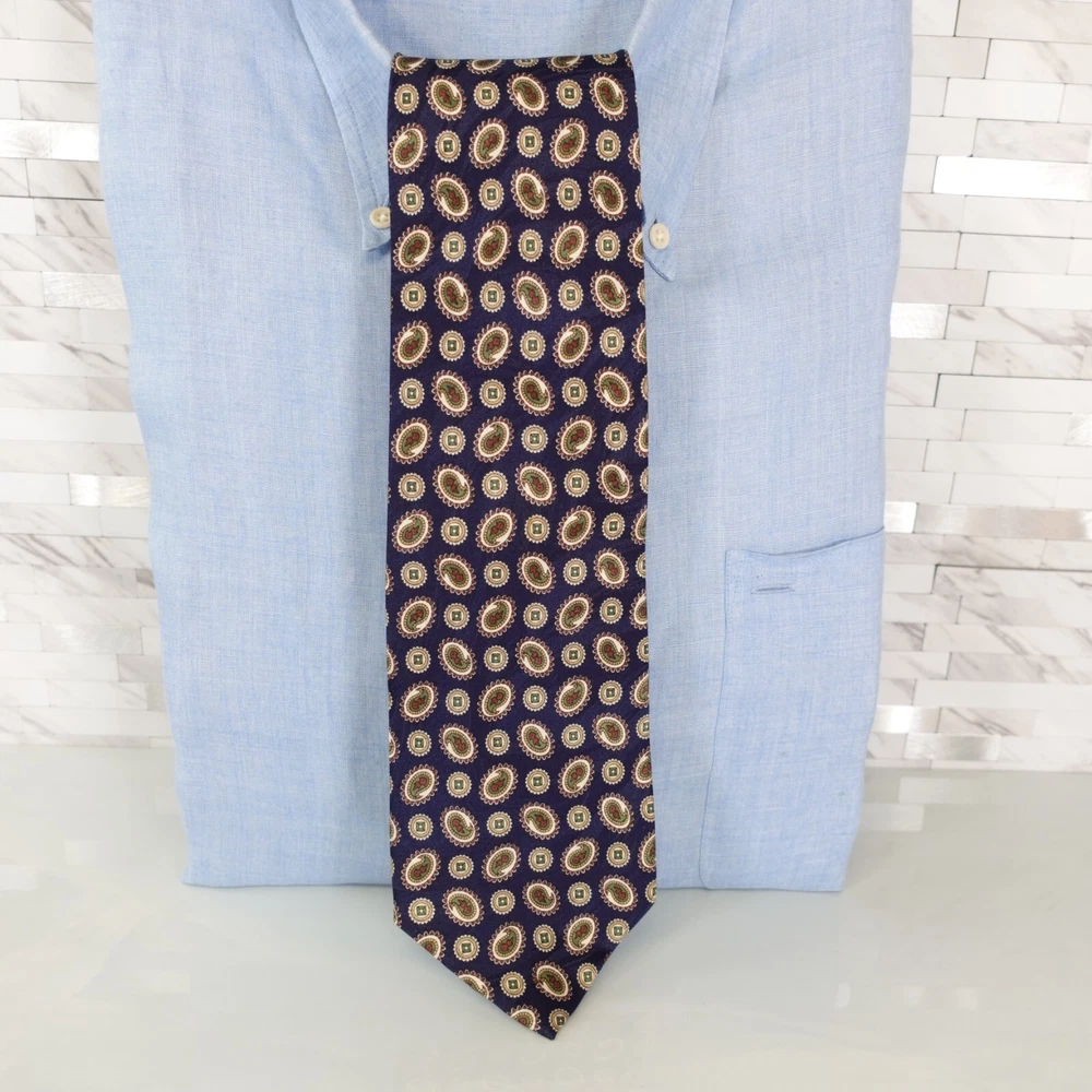 RUCHQURE FELLOW Men's Navy Blue Paisley Medallion Necktie Geometric 100% Silk Pointed, Regular width & Length Made of 100% Silk Handmade Dry Clean Only Navy Blue, Paisley Medallion Geometric Pattern Excellent Pre-owned Condition. Mint and No flaws 🌱🌿 Proud to be a member of Eco - Packaging Alliance & utilize a sustainable packaging. 🌳 🇺🇸 USA - NYC ( New York City Seller ) 🇺🇸 ALL our necktie are Top High Quality Worldwide Brands & Guaranteed 100% Authentic. Mostly 95% of our Necktie items are Likely New, Unused from stores or Excellent pre-owned condition. Please note, some item have mild crease/s for storage and shipment. Ready to Ship items out Same or Next Business with tracking confirmation. Additional Necktie for $2 shipment for Domestic. Happy to bulk sell and combine shipping on multiple purchases won. Worldwide shipping available. Proudly posting 100+ New Listings everyday, 7 Days a week. Add me as a Saved Seller & Check back daily Items taken in photography - All colors bright & vibrant, actual item may differ in color in monitor or mobile screen & every individual may see colors differently. Kindly review all photos, conditions, & flaws if indicated. I'm grateful for offers & willing to negotiate so you can have these items. If you have questions, don't hesitate to message me. Thank You Exclusion: Shirt is not included for sale C0660-2-RL7-27