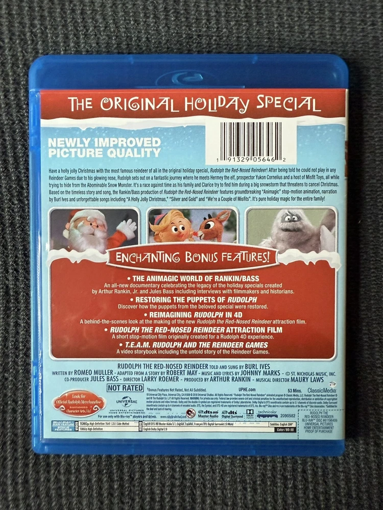 Delve into the timeless holiday classic, "Rudolph the Red-Nosed Reindeer," with this deluxe Blu-ray edition. Produced by Universal Studios and directed by Larry Roemer, this enchanting 1964 Christmas TV special is a must-have for family movie nights. The voice of Rudolph is brilliantly portrayed by Frank Welker, bringing this beloved character to life. This full-screen Blu-ray presents the movie in crisp, clear quality, letting you experience the magic of the season's most cherished animation. It's packed with features including English subtitles, making it accessible for all audiences. With a run time of 53 minutes, it's a perfect way to share the spirit of Christmas with loved ones.