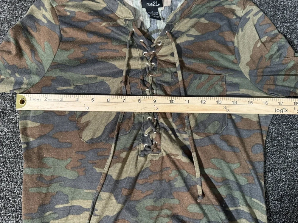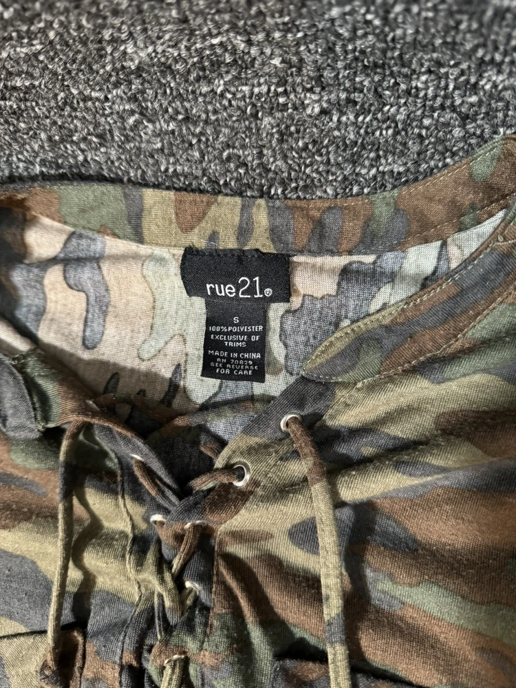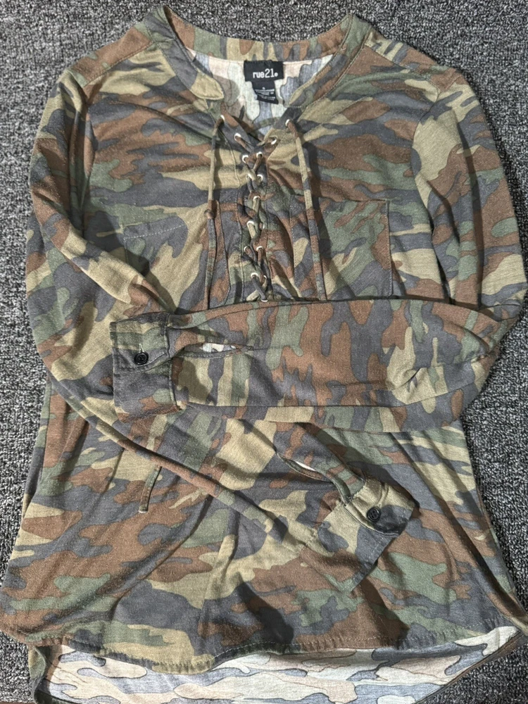 Rue 21 Women’s Camouflage Long Sleeve Pull Over Shirt Size S No stains rips or tears. For measurements refer to pictures. If you have any questions please message me.