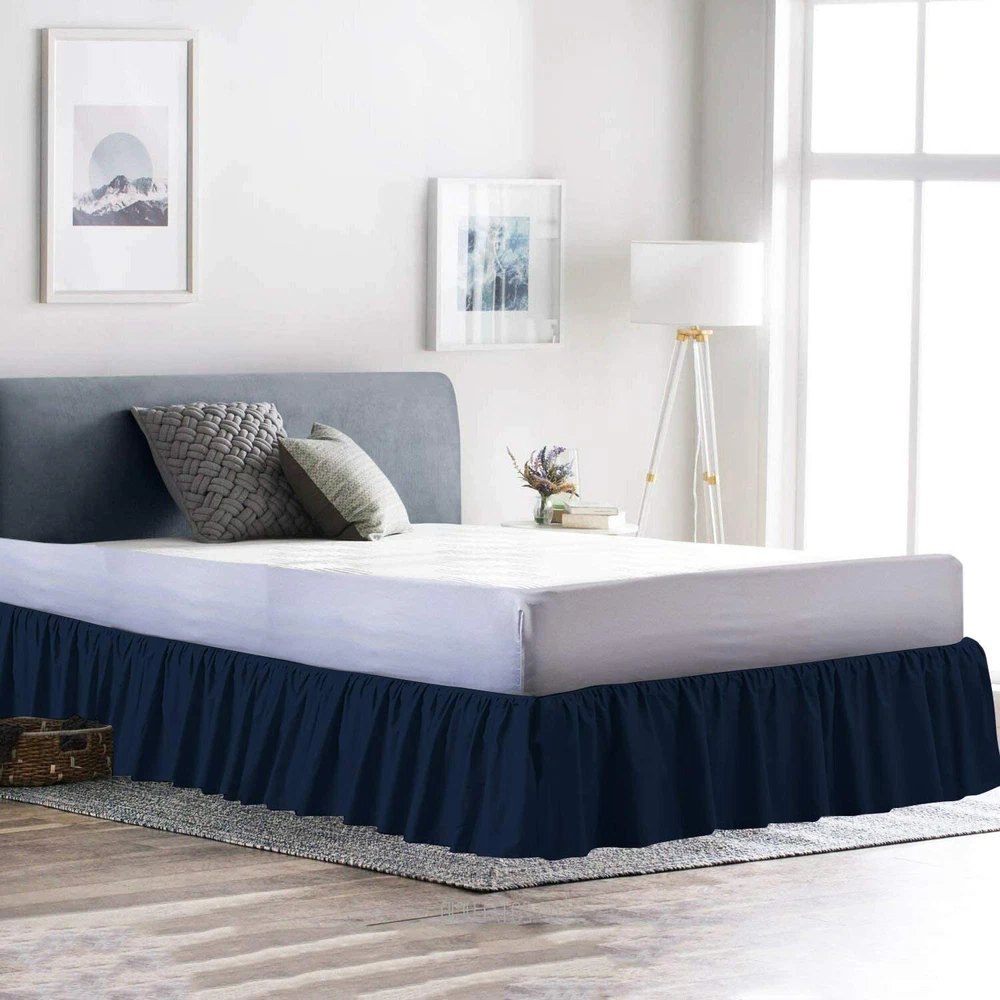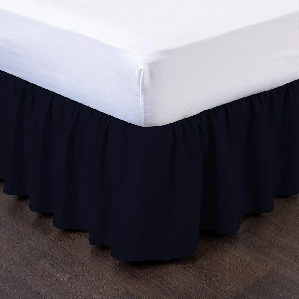 Ruffled Bed Skirt with Split Corners Full Navy Blue 21Inch Drop 100%Cotton 600TC