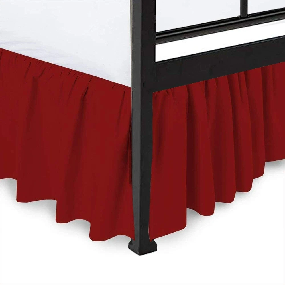 Ruffled Bed Skirt with Split Corners Queen Burgundy 18inch Drop 100%Cotton 600TC