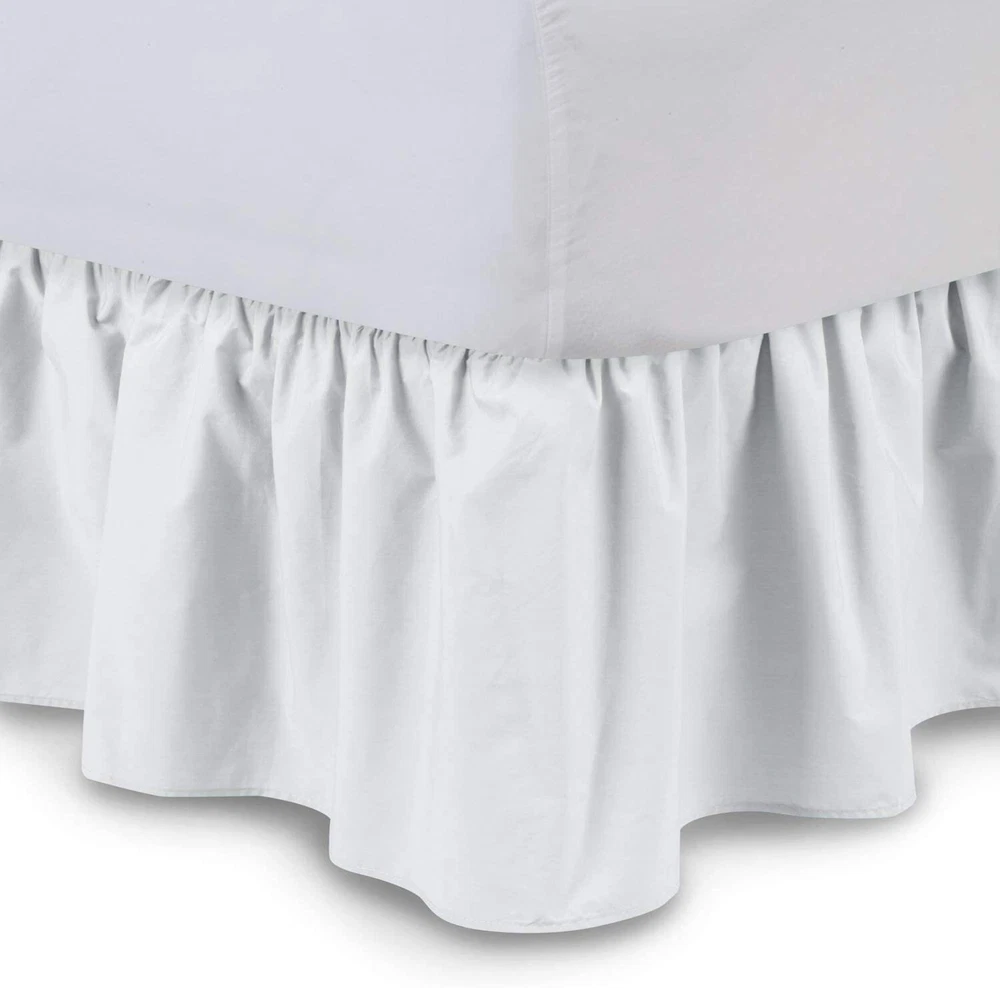 Ruffled Bed Skirt with Split Corners Queen White 21inch Drop 100% Cotton 600 TC