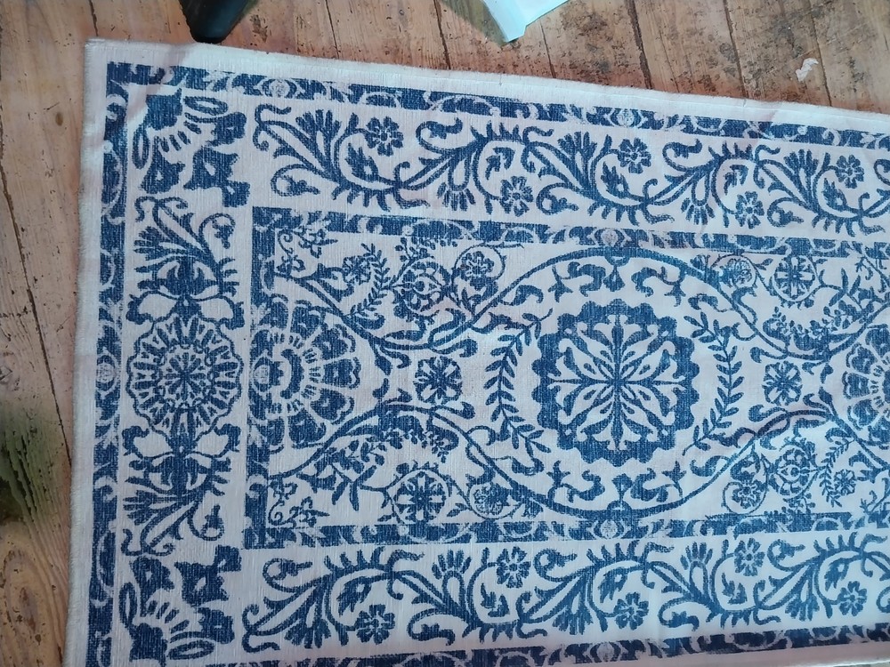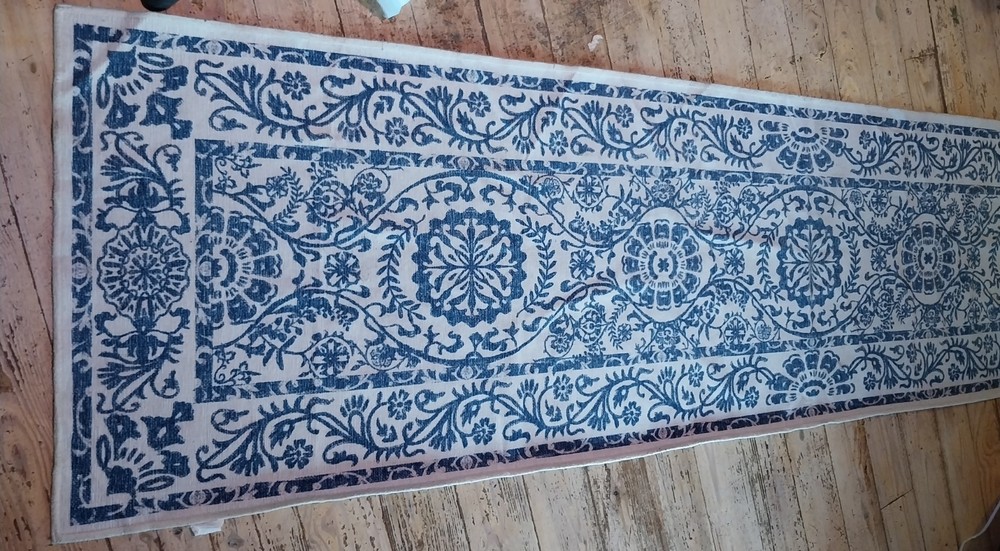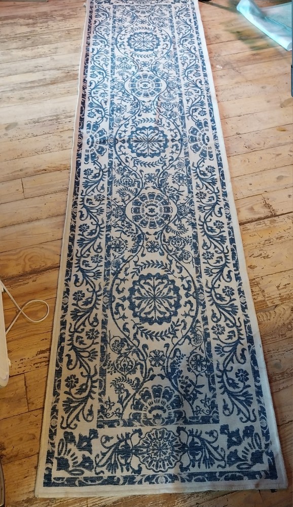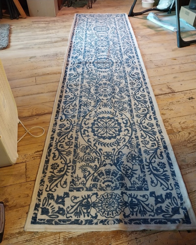ITS PRETTY, I DONT KNOW MUCH ABOUT RUNNERS!!*****This Rug Runner features a Dalmatian print pattern in blue, perfect for adding a contemporary touch to any bedroom. Made of 100% wool with a normal pile type, this long runner is 3 x 10 ft in size, making it ideal for adult use. Easy to clean and designed in the 21st century, this stylish and unique piece is a great addition to any home.