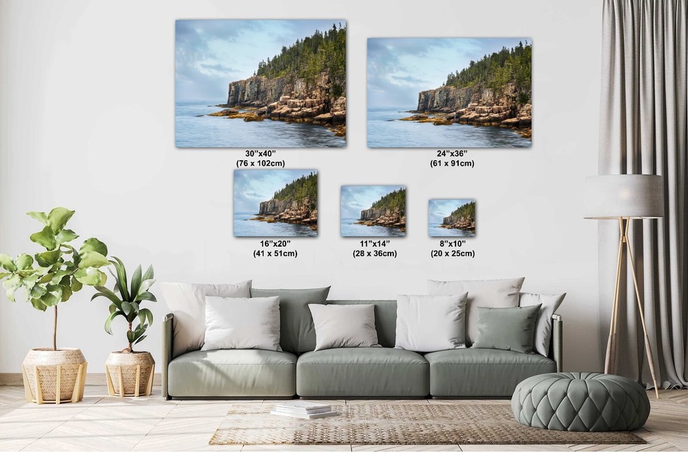 Otter Cliff at Acadia National Park is a spectacular sight. Its rough beauty makes you wonder what secrets the waves might share if they could talk. The cliff, rising sharply from the Atlantic Ocean, stands like a guardian of wild nature, ready to amaze anyone who comes to see it. As a photographer, I live for moments like these. The crisp air filled with the scent of pine and saltwater made my heart race. I set up my camera, anticipating the perfect shot. The cliff’s jagged rocks sticking out toward the sea looked almost alive. Indeed, the relentless ocean waves have frozen them in time, continuously shaping them. Otter Cliff, one of the tallest coastal cliffs in the world, rises 110 feet high. It’s a beacon for both climbers and sightseers. Every crack and crevice in this Acadia cliff tells a story of nature’s powerful and beautiful forces. As I looked through my camera lens, I could see the fine details of the rock face, shaped by centuries of wind and water. I noticed the play of light and shadows as I was transitioning from one angle to another. The evergreens crowning the cliff contrasted beautifully with the rugged stone. Indeed, this scene was a photographer’s dream. Each click of my camera captured a different side of this Acadia cliffside. From smooth stones at the base to jagged peaks above, Otter Cliff was the highlight of my story. Consequently, it captured every aspect of the scene perfectly. In every direction, the views were breathtaking. The Atlantic Ocean spread out, its waves crashing rhythmically against the base of the cliff. This continuous dance of water and rock felt almost hypnotic. The sound of the surf constantly reminded me of the natural forces at work. It was a symphony of nature that I was lucky enough to witness and capture. Taking a deep breath, I framed my final shot of the day. The photo would show the lasting beauty of Otter Cliff, a real gem of Acadia National Park. Each image I captured was more than just a photograph. It was a moment in time, a piece of this incredible place’s soul. Otter Cliff, with its wild and untamed beauty, stands as a monument to nature’s creativity. As I packed up my gear, I knew that this visit would stay with me forever. The photographs would remind me of the sheer power and tranquility found in this corner of Maine. Otter Cliff at Acadia National Park is not just a destination. Instead, it was a living, breathing testament to the beauty of the natural world. ---- PRODUCT DETAILS: There are 5 ways to print these images. 1) Premium Photo Paper are high quality, professional paper-prints. Sharp, Vivid and rich Color sets this apart from a casual photo print. You'll feel like you're there. Premium Photo Paper will last a long time. This option is available in 8x10 inches, 11x14 inches or 16x20 inches. They are designed to be placed in a glass frame, which can be purchased separately (starting at a few dollars at your local Target or online). 2) Ready to Hang Canvas are ready to hang right out of the box with zero assembly required. Ultimate convenience. Gorgeous finished look. It comes out of the shipping box finished and ready to hang with a simple nail in the wall. Canvas Prints are a well-known, high-end way of displaying photographs. 0.75 or 1.5 inch thick (depending on which size that you order) wooden stretcher-bars that give it shape, in the same way an oil painting is traditionally assembled. There are no staples or ugly lines visible on the sides (very important). Estimated delivery time for printing, assembling, packing and shipping is around 10 days. 3) Ready to Hang Canvas (split into 3 panels) This is for larger pieces, and the photograph is split into 3 even panels, 3 separate canvas panels which together make a single large image. This gives a modern look, and allows spectacularly large sizes on your wall! 4) Aluminum Metal Prints Create elegant wall decor that shines with high-end, exclusive and unique aluminum metal prints. Create a polished addition to any home or office. 3/64" thick aluminum panel. Features a glossy coating and rounded edges. UV resistant ink prevents fading. All metal sizes are ready to hang on your wall, right out of the box. 5) Acrylic Prints Create eye-catching home decor with modern acrylic prints. Light refracts through the museum-quality acrylic bringing vibrancy and depth to your photos. The 1/4" thick, clear acrylic produces superb image quality from edge to edge and absolutely stunning, brilliant color! UV resistant ink prevents fading. All metal sizes are ready to hang on your wall, right out of the box.