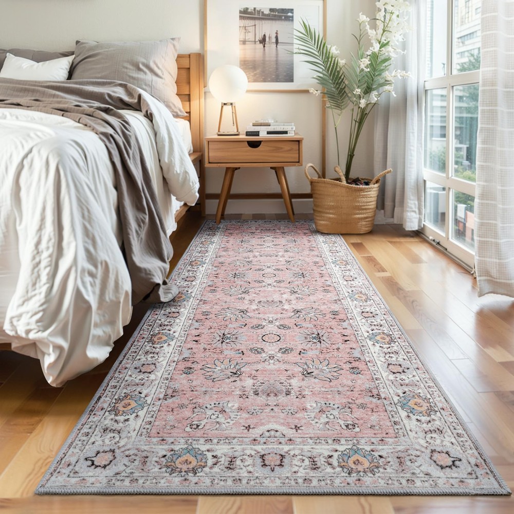 Add a touch of vintage charm to your home with the boho rug. Some details about print retro rugs:1. Multiple Elements: Rug for bedroom contains elements of vintage, modern, and more, the vintage look and colors are suitable for any design. 2. Non-Slip Backing: Anti-skid point plastic backing helps to keep the floral rug in place. Even if running on it quickly, it doesn't move and slides around 3. Washable: The durable materials used ensure that the carpet retains its softness and shape after many washes, providing long-lasting beauty and functionality. Size Selection Recommendations: The 2'x3' and 2'x6' boho rugs are suitable for the entrance, bedside, hallway, kitchen, or bathroom. The 4'x6' and 5'x7' boho rugs are suitable for the living room, bedroom, playroom, apartment, or office. Color Selection Recommendations: The soft pink vintage print brings warmth and romance to your room decor. The mystical grey color retro print adds a touch of nostalgia and personality to any space. The fresh blue color vintage print brings a serene and calming match to your home decor. The hot orange color vintage print brings passion and confidence to your home decor. The vibrant beige color retro print adds warmth and style to your home decor. Some instructions about the product. 1. Boho area rug is vacuum packaged. If creases appear after receiving, you can use a dryer to quickly remove wrinkles. 2. Dyes, backing, and packing all have natural odors that are sometimes magnified after being sealed for shipping. Place the carpet outside to help air it out.3. Colors, sizes and patterns of woven rugs may vary slightly. And due to differences in monitor resolution and lighting, you may notice slight differences. 【Machine Washable Rugs Easy to Clean】: Washable door mat can be cleaned with cold water on gentle ca gentle cycle (no bleach), air-dry, or dry on an ycle (not to add bleach), air dry or dry on air-only cycle without heat. For daily upkeep, use a vacuum cleaner or a quick wipe. The durable material used ensures that carpet retains its shape and beauty even after many washes. Ideal as a muddy mat indoor entrance, welcome mat, porch rug, bathroom rug, kitchen floor mat, rugs for living room, entryway rugs, student's dorm room, or laundry room rug. 【Upgrade Non-Slip Design】: The boho rug is made of upgraded Thermoplastic Rubber backing, which keeps the rug securely in place, avoiding any shifting or slipping. You don’t need to pay for an extra rug pad; the Christmas rug stays in place even with heavy foot traffic. Low-Pile Rugs resist messes like pet hair, dander, and stains. Gentle on playful paws and claws, it reduces floor scratches and withstands chewing or digging. Children, the elderly, and pets can freely play on the boho rug. 【Thin Design & Folding Packaging】: Vintage floral rug is made of high-quality Microfiber, with a smooth surface, providing a certain degree of cushioning for the feet. This living room rug with moderate thickness not only decor your home, soft to the touch, but also can be easily placed behind doors and under furniture. The sweeping robot can move around to clean the area rug. The thin design also makes it convenient for you to put the rugs into the washing machine for cleaning and easy storage. 【Christmas Decor】: The Rug features a beautiful floral design, making it a stylish and eye-catching centerpiece for your home. Our carpet living room is available in multiple sizes, allowing you to create a rug layout that fits your space. Whether you need a rug for your entryway, a runner for your kitchen, or larger coverage for your living room, you can choose the dimensions that match your style. The bedroom rug color may appear slightly different under various lighting conditions. 【Tips】: Folded rugs may have creases when they arrive. These are just from the way it was packaged during shipping. With regular use, the creases should naturally disappear within a few days, or gently iron over a damp towel. However, if you want to speed up the process, you can try folding the rug in the opposite direction or placing a heavy object on top of the creases to help flatten them out faster.