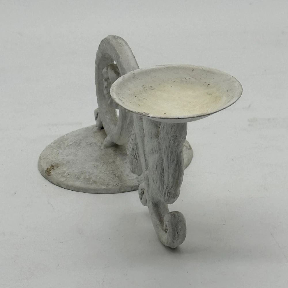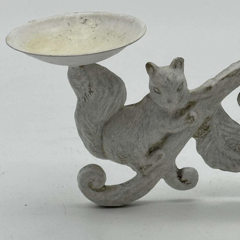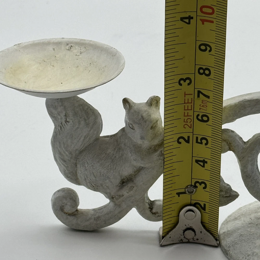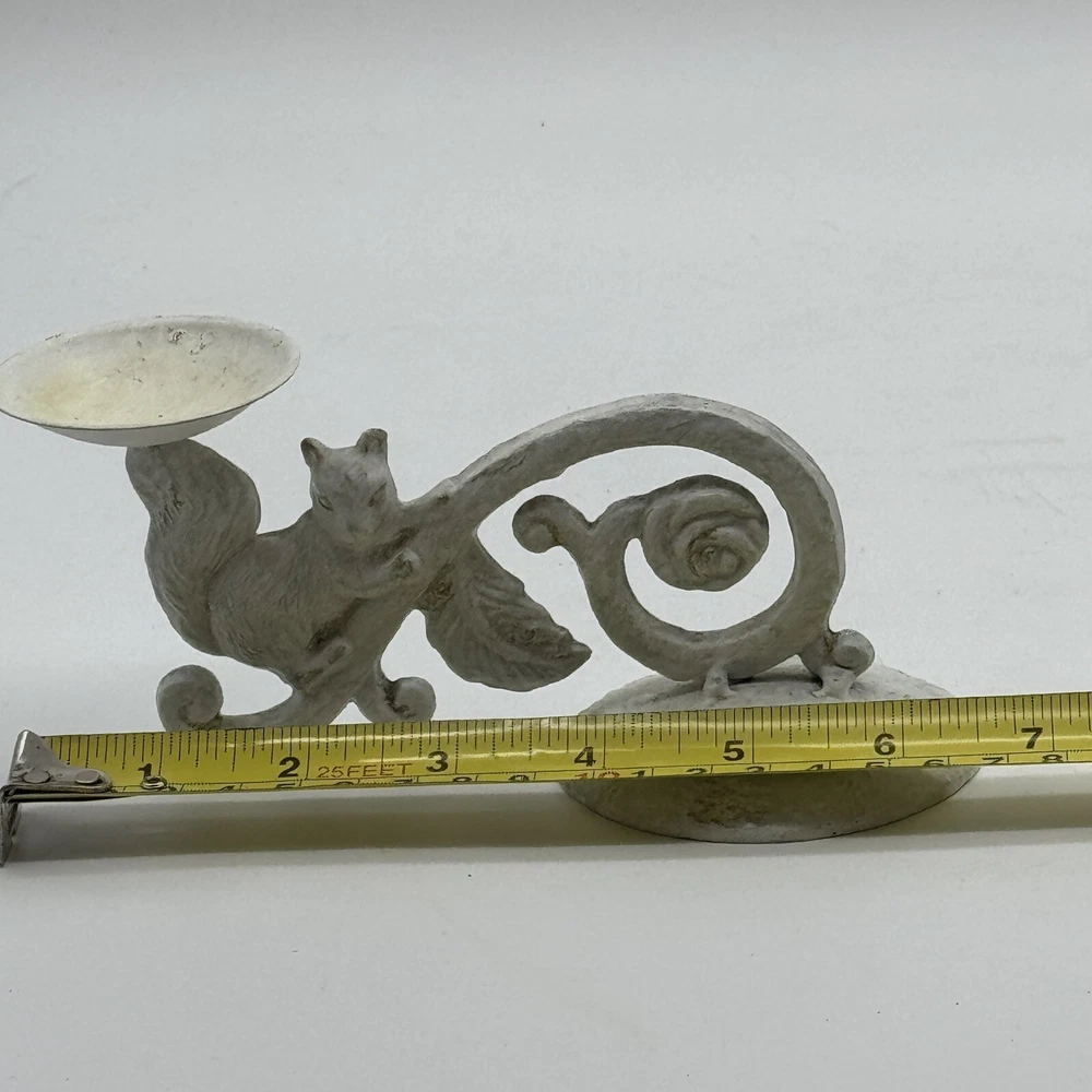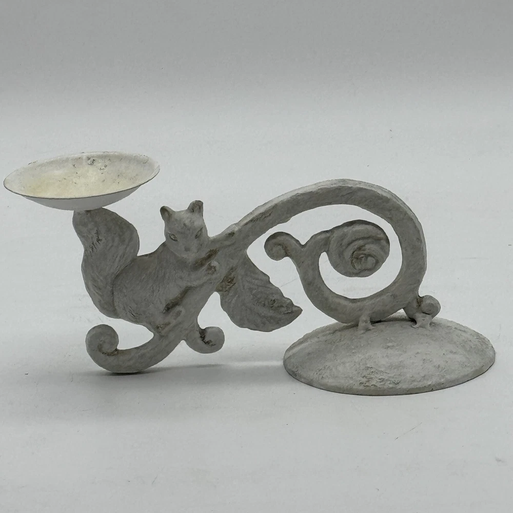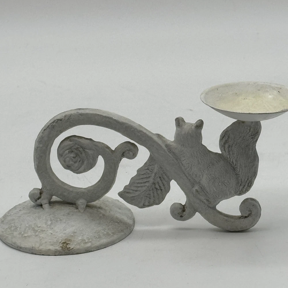 The Russ Berrie And Co Vintage Iron Squirrel Votive Candle Holder is a charming addition to any Country Cottage decor. Made of iron, this candle holder features a squirrel design, adding a touch of whimsy to any space. The white color and Country style make it a perfect accent for creating a cozy and rustic atmosphere. Perfect for holding votive candles, this decorative piece combines functionality with a cute animal theme for a unique look in your home.