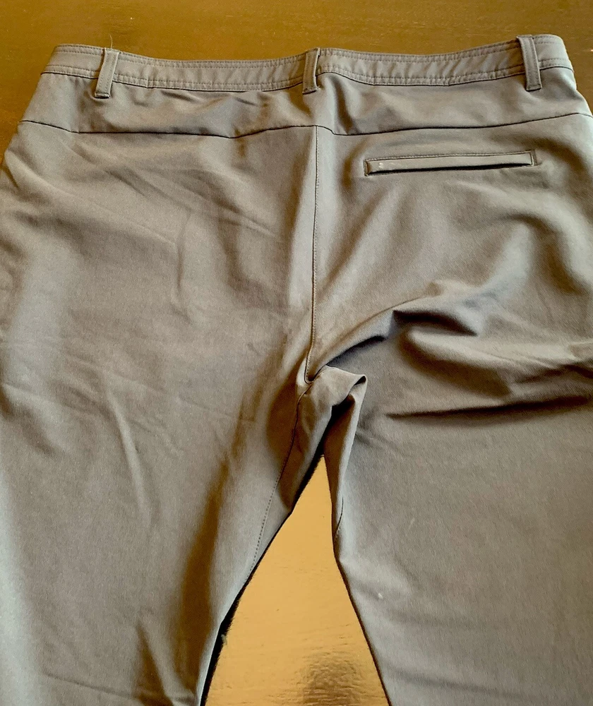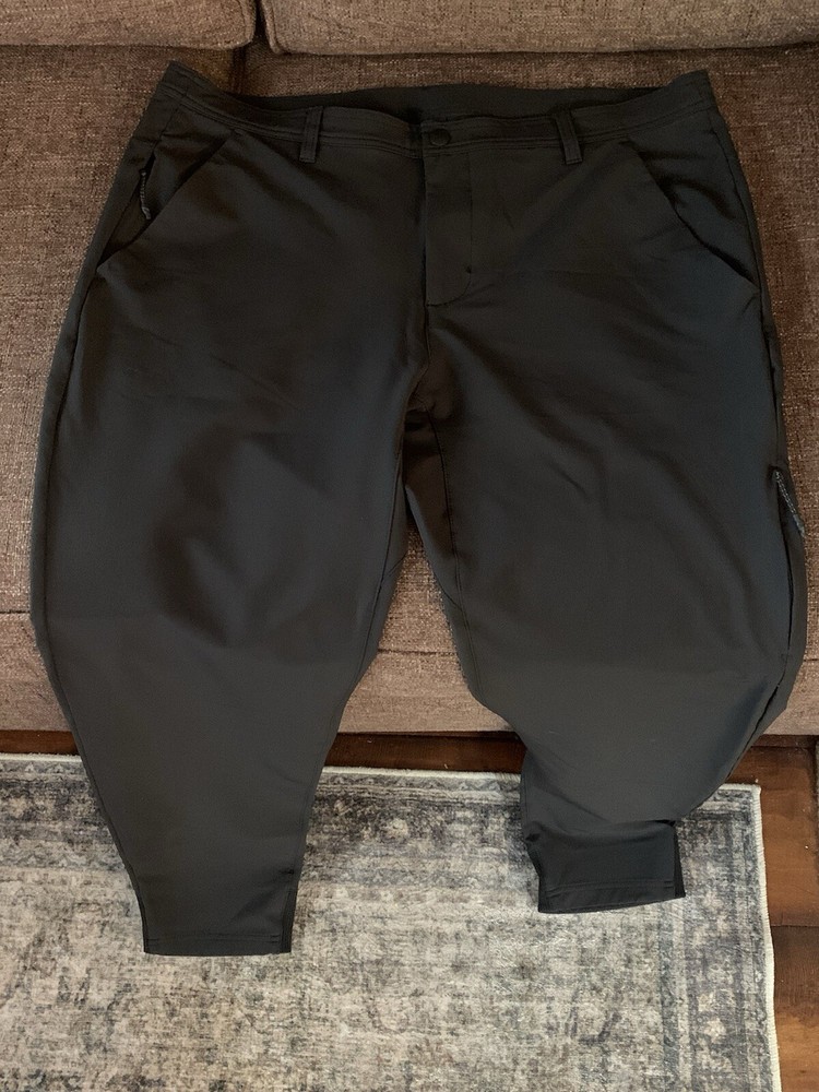***2nd and last photo shows the true color of this item, the pants are Black, not charcoal, the material of the pants with the lighting changes the color in the photos*** **Pre Owned, no odors, pet and smoke free home** *Pants have some marks on them from wear and tear please see all photos to see the overall condition of these pants* The Russell Athletic Tech Pants in size L are designed for outdoor activities, featuring a solid green color and a durable cotton blend material with microfiber fabric type. These jogger-style pants have a zip closure and multiple pockets for convenience. The water-resistant design makes them suitable for various sports like tennis, soccer, hiking, and more. With a regular fit and machine washable care instructions, these versatile activewear pants offer both style and functionality for active men on the go.
