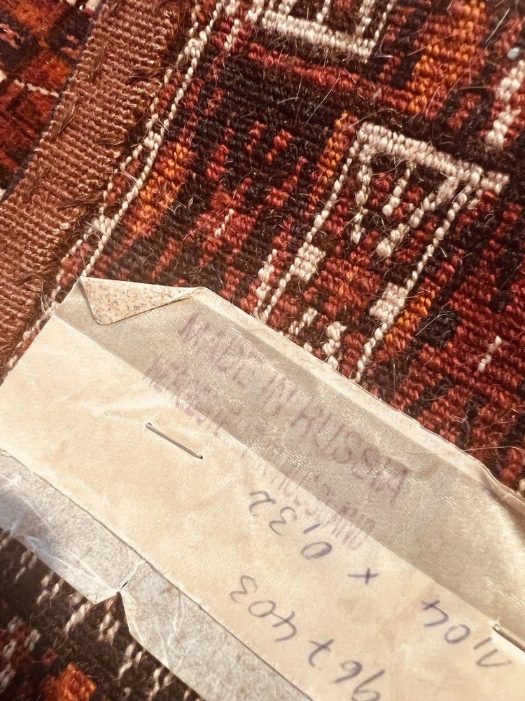 Russian Geometric Runner Rug Brown Red White Black 196 x 103 cm Rectangle