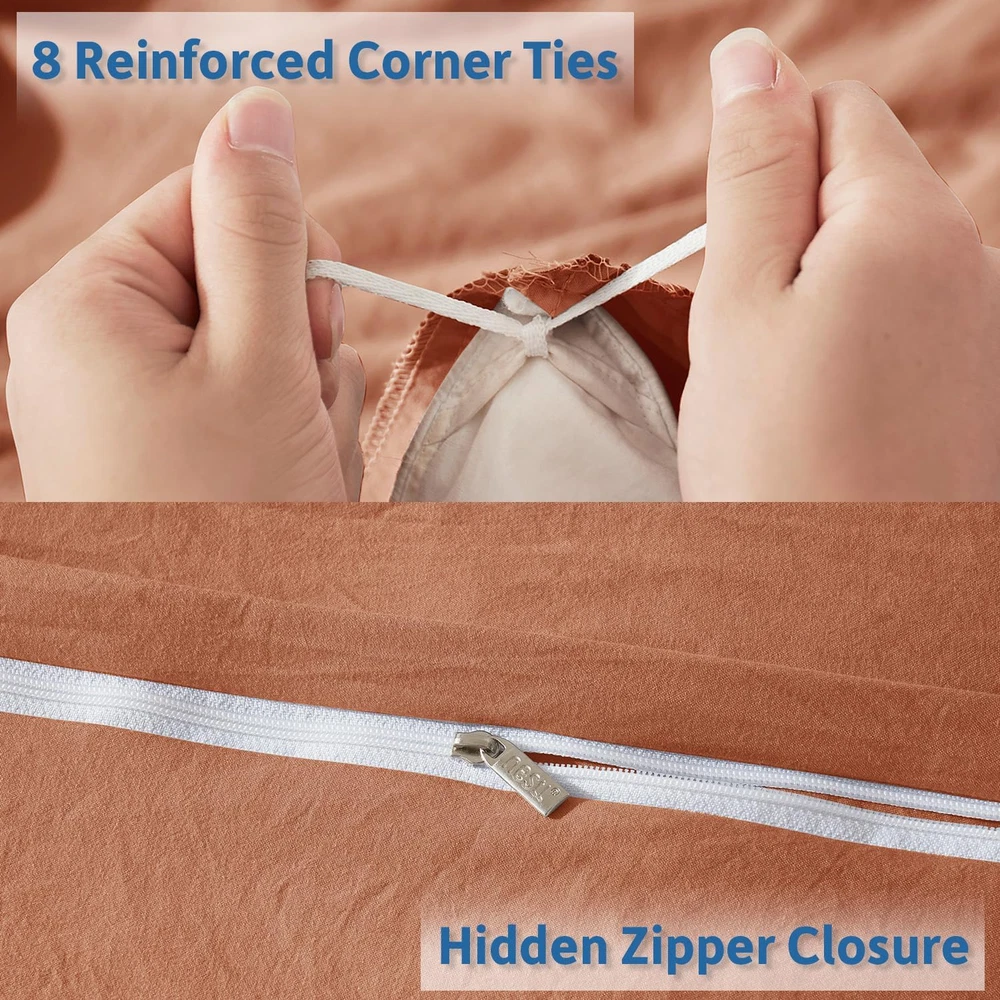 Neighborhood service Rust Duvet Cover King Size - Soft Prewashed King Duvet Cover Set, 3 Piece, with Zipper Closure, 1 Duvet Cover 104X90 Inches and 2 Pillow Shams ENJOY THE FEATURES Super Soft Duvet Cover Set: Woven from durable, high quality, 110 GSM microfiber that’s prewashed for a super soft, cozy feel, our cooling duvet cover is lightweight, breathable, and cool to the touch - an all-season solution for serene sleep. King Duvet Cover Set: 3-piece king size duvet cover set includes one duvet cover king size 104” x 90” and two pillow shams 20” x 36”. Comforter/insert not included. Hotel Duvet Cover: Our microfiber duvet cover with ties includes 8 ties that keep the duvet of your choice securely attached, and hidden zipper closure for a seamless look. Pillow shams feature stylish 2” flange and back overlap closure. Easy Care and cleaning: Our durable, machine washable, lightweight duvet cover is wrinkle free, fade resistant, and made to last. We proudly support sustainable manufacturing practices with OEKO-Tex Standard 100 certification. Upgrade Your Bedroom: Explore our wide selection of vibrant colors for our bedding duvet covers king size. Shop with confidence because no matter what, we’ve got you covered. Product Description COMFORT SOFT, BREATHABLE, AND COOL TO THE TOUCH Nestl’s premium duvet cover set is crafted from the finest 110 GSM prewashed microfiber, which makes it luxuriously soft, breathable, and cool to touch. 1 Texture & Zipper 2 Corner Ties & Pillow Sham 3 Style & Maintenance Shop the Nestl Collection Add to Cart Add to Cart Add to Cart Add to Cart Add to Cart Add to Cart Customer Reviews 4.3 out of 5 stars 1,612 4.4 out of 5 stars 94,639 4.6 out of 5 stars 64,100 4.3 out of 5 stars 10,518 4.3 out of 5 stars 22,425 4.3 out of 5 stars 8,458 Price $21.99 $ 21 . 99 $23.99 $ 23 . 99 $22.49 $ 22 . 49 $37.99 $ 37 . 99 $15.99 $ 15 . 99 $40.43 $ 40 . 43 Product Type Duvet Cover Duvet Cover Bed Sheet Reading Pillow Bed Skirt Bed Pillow Features Breathable/Lightweight/Soft Breathable/Lightweight Breathable/Lightweight Supportive/Adjustable/Portable Durable/Secure/14" Drop Cooling Effect/Adjustable Material Prewashed Microfiber Double-Brushed Microfiber Double-Brushed Microfiber Microfiber/Memory Foam Double-Brushed Microfiber Bamboo Rayon/Memory Foam Sizes Available Full/Queen/King/Twin + more Full/Queen/King/Twin + more Queen/King/Twin/Full + more Standard/Petite Small + more King/Queen/Full/Twin + more King/Queen/Toddler/Body Machine Washable ✔ ✔ ✔ ✔ ✔ ✔ Pet-Friendly ✔ ✔ ✔ ✔ ✔ ✔ Item model number B0CQZ4Z4Z2 Style Casual Pattern Solid Country of Origin China Number of Pieces 3 Unit Count 1.0 Count Pillowcase Quantity 2 Material Microfiber Item Display Dimensions 90 x 104 x 1 inches Age Range (Description) Adult Seasons All, Winter, Summer, Spring Manufacturer Bedding Closure Type Zipper Item dimensions L x W x H 10 x 11 x 4 inches Item Weight 3.92 pounds Sham Quantity 2 Special Feature Wrinkle Free, Lightweight, Fade Resistant, Ultra Soft, Prewashed, Breathable Color Rust (No Comforter) Included Components Comforter not included, 2 Pillow Shams 20"x36", 1 Duvet Cover 104"x90" Product Dimensions 10 x 11 x 4 inches Product Care Instructions Machine Wash, Tumble Dry Size King (104" x 90") 11.0 inches x 10.0 inches x 4.0 inches. Weight: 3.92 lb PAYMENT We accept all payments via Ebay using Credit Cards , PAYPAL , Apple Pay and many others SHIPPING We are always working hard to ensure your package arrives as soon as possible. Please understand that some factors like weather, high postal traffic, and the performance of shipping companies are outside of our control. We offer free shipping to the lower 48 states and ship within 3-5 business days of payment, usually sooner. We do not accept P.O. Boxes. Please provide a physical address. We do not ship internationally at this time. DELIVERY & RETURN POLICY We do not offer returns unless the item violates eBay policies. Please be aware these polices only make sellers accept returns if the item violates eBay's Buyer Guarantee. If you would like to learn more about this please visit eBay's Help Page. Thank you for your business