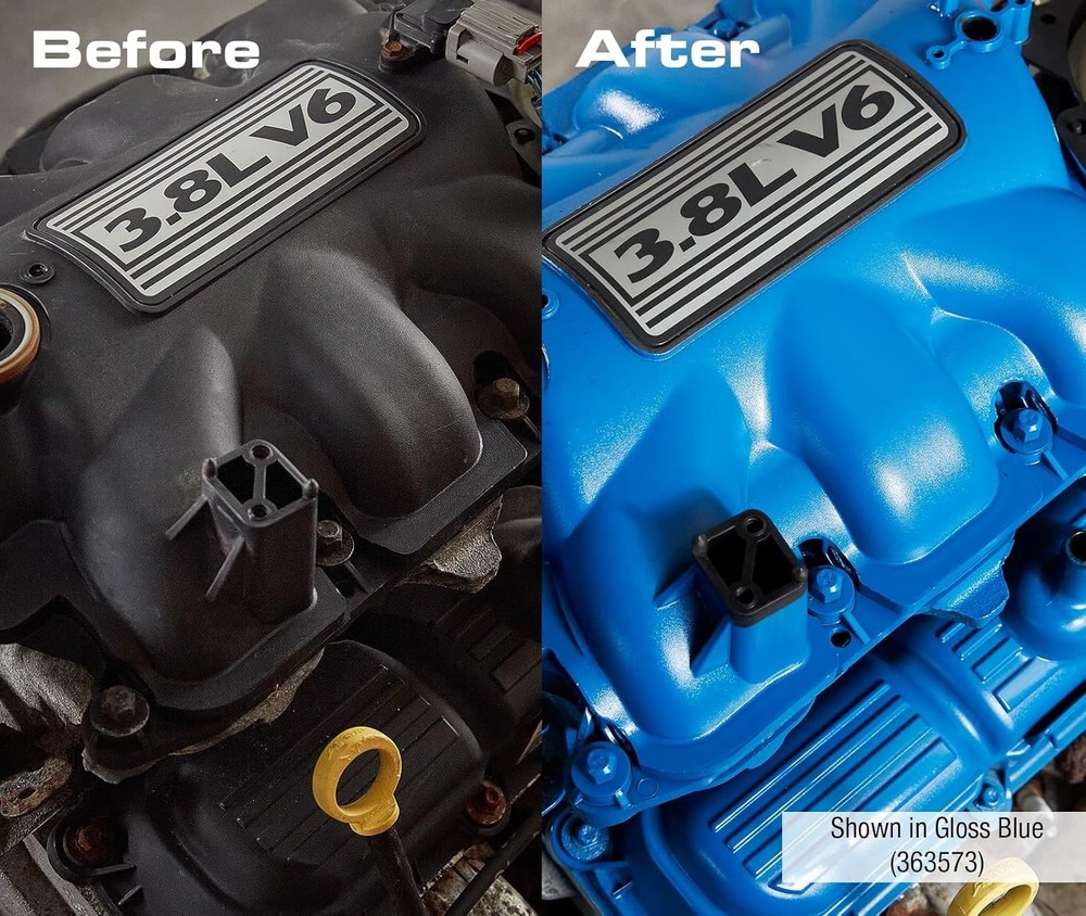 Rust-Oleum 363574 Engine Enamel Spray delivers a durable, heat-resistant finish for automotive engines and metal parts. This gloss blue formula withstands high temperatures up to 600°F, resists oil, gas, and rust, and provides a long-lasting vibrant look. Includes: 6 cans of Rust-Oleum 363574 11 oz per can (approx. 0.34 quarts each) Color: Gloss Blue Heat resistant up to 600°F Durable, oil- and gas-resistant finish Ideal for engines, radiators, and metal components Perfect for restoring and protecting high-heat automotive parts with a professional-grade finish.