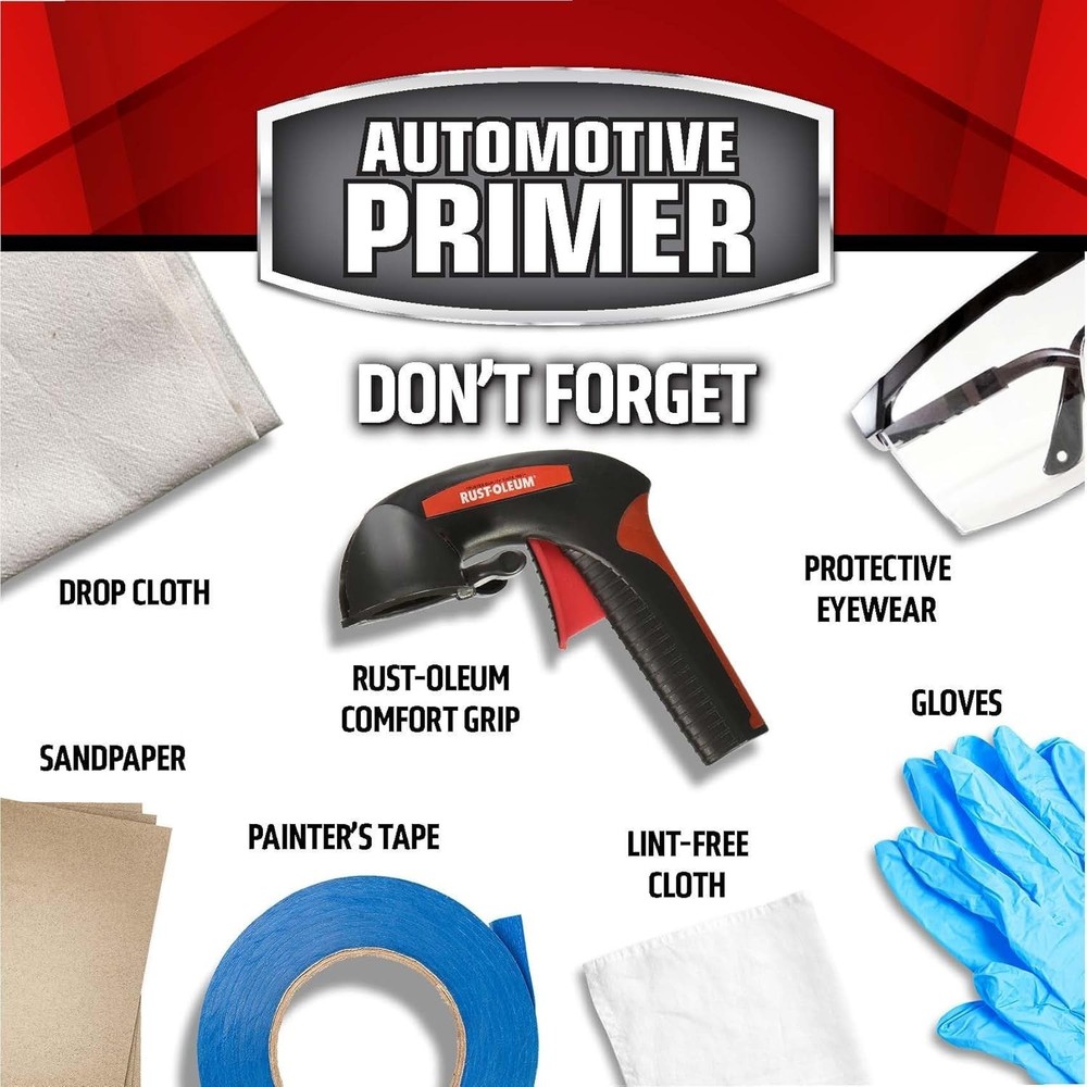 About this item Wet and dry sandable primer is suitable for use on wood, metal and fiberglass surfaces Oil based paint with Stops Rust formula provides rust resistant base coat for cars, trucks and other vehicles Covers up to 15 sq ft and dries to the touch (and can be recoated) in 10 minutes. High quality spray paint ensures long lasting, durable coating Provides superior top coat adhesion and flat finish yields a smooth surface when sanded Wet and dry sandable Fast drying All-purpose formula Stops Rust Formula prevents corrosion and rust This item is not for sale in Catalina Island