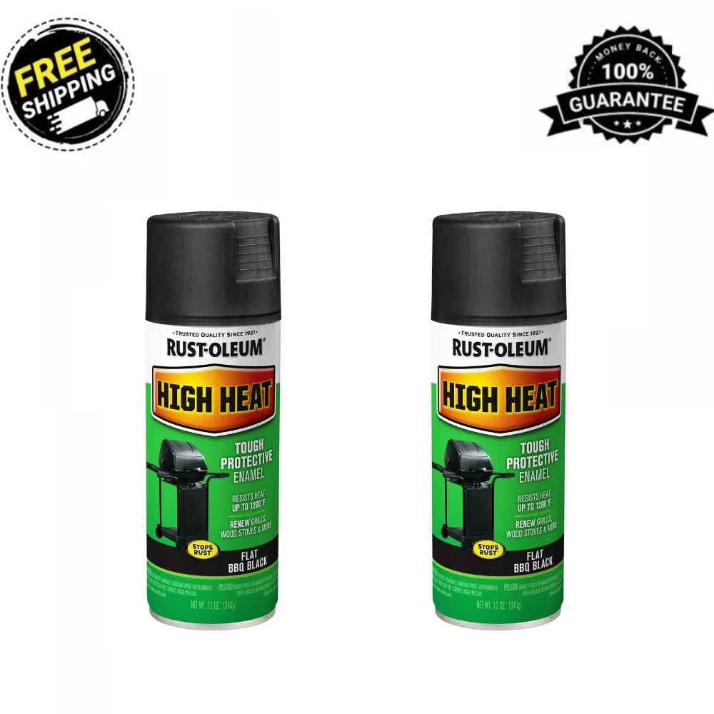 Rust-Oleum Specialty Flat High Heat Spray Paint-7778830, 12 oz - (Pack of 2 ) Bar-B-Que Black, Rust-Oleum Specialty Flat High Heat Spray Paint-7778830, 12 oz: Is a superior rust-preventive enamel that provides deep color, rich sheen, and the best protection for high heat surfaces. Durable satin finish gives metal surfaces a premium look along with excellent gloss and color retention after repeated heating. Withstands temperatures of up to 1200F. Ideal for barbeque grills, wood stoves, radiators, fire pits, fireplace screens, automotive parts, and more. For use on the exterior of barbeque grills, wood stoves, radiators, fire pits, fireplace screens, automotive parts, and more Designed to renew and protect metal surfaces subject to heat up to 1200F Oil based formula that is designed for superior rust and corrosion protection Maintains superior color and sheen after repeated heating Do not use in areas directly exposed to flames (e.g., inside of grills or fireplaces)