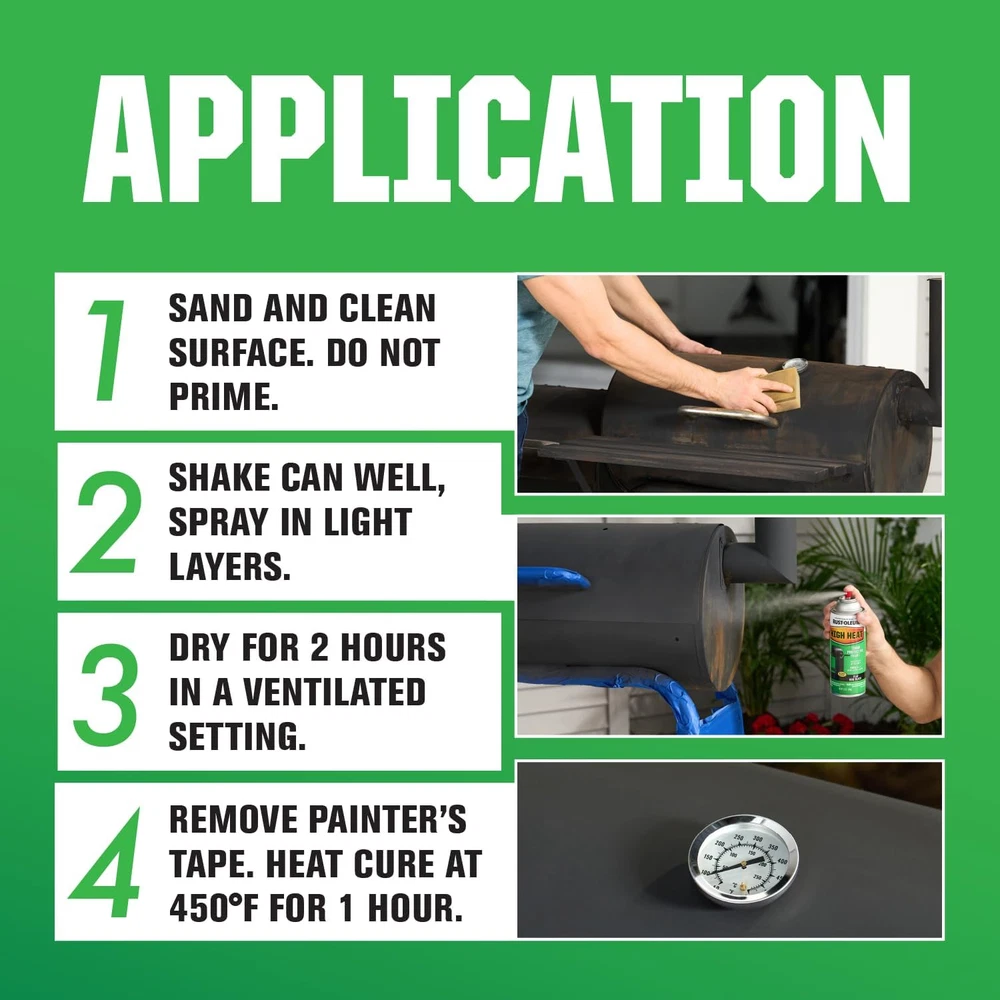 Store New Arrivals Add to Favorite View Feedback Contact Rust-Oleum 7778830 High Heat Enamel Spray Paint, Bar-B-Que Black, 12-Ounce Description Item model number 7778830 Style Spray Paint Age Range (Description) Adult Country of Origin USA Warranty Description Warranty Batteries Included? No Unit Count 12.0 Ounce Batteries Required? No Finish Satin Color Code Black Brand Rust-Oleum Material Plastic Coverage 8 sq ft Package Information Can Item Form Aerosol Specific Uses For Product Interior/Exterior Paint Type Spray Manufacturer Rust-Oleum Item Package Quantity 1 Indoor/Outdoor Usage Outdoor Water Resistance Level Not Water Resistant Item Weight 14.4 ounces Surface Recommendation Metal Special Features Rust Resistant Special Feature Rust Resistant Finish Type Satin Part Number 7778830 Item Volume 12 Fluid Ounces Color Bar-B-Que Black Is Discontinued By Manufacturer No Global Trade Identification Number 00020066777883 Is Waterproof False Model Name High Heat Enamel Product Dimensions 2.56 x 2.56 x 7.87 inches Size 12 Ounce (Pack of 1) Ideal for updating the exterior of barbeque grills, wood-burning stoves, radiators, engines or other metal items Oil-based formula designed to renew and protect metal surfaces subject to heat up to 1000°F Covers up to 7-8 sq. ft. and dries to the touch in 30 minutes Retains excellent color retention after repeated heating Provides a rich satin finish that prevents rust, corrosion and chipping Rich satin finish Provides Rust-Oleum Stops Rust protection No primer necessary Fast drying. Dry to touch in 30 minutes This item is not for sale in Catalina Island Product Description Rust-Oleum High Heat Spray Paint makes your barbecue grill look like new. Specially formulated to resist heat up to 1000º F. Resists outdoor weathering and provides rust protection. Apply to grills, wood-burning stoves, radiators, engines or other metal items. From the Manufacturer Rust-Oleum 7778830 High Heat Heat Resistant BBQ Finish Spray Paint, Black Rust-Oleum Specialty High Heat Spray retains color and finish up to 1200º F. Apply to grills, wood-burning stoves, radiators, engines or other metal items. Provides rust protection. Rust-Oleum 7778830 High Heat Heat Resistant BBQ Finish Spray Paint, Black Features: Make your barbecue grill look like new Specially formulated to resist heat up to 1000º F Resists outdoor weathering rosol Black. ABOUT US We offer the best prices around on high quality products. Our E-store includes media such as books, movies, music and games while offering electronics, toys, sporting apparel, clothing, tools, general home, garden items and more. SHIPPING We are always working hard to ensure your package arrives as soon as possible. Please understand that some factors like weather, high postal traffic, and the performance of shipping companies are outside of our control. We offer free shipping to the lower 48 states and ship within 2 business days of payment, usually sooner. We do not accept P.O. Boxes. Please provide a physical address. For shipping outside of the continental USA, we only use eBay's Global Shipping Program.The item is shipped to KY and then sent to the rest of the world. International customers are responsible for all duties and taxes. Continue to check out in order to calculate costs for shipping the item to your country. Messages regarding eBay's Global Shipping Program MUST be directed at eBay EXCLUSIVELY. RETURNS We offer a 30-Day Return Policy on items which you are not completely satisfied with. You have the option for a full-refund or an exchange of the item. No returns are available on items shipped outside of the USA. PAYMENT We accept PayPal. CONTACT US This page content is yet to come Please ad us to your favorite seller and visit again later Thank You CUSTOMER SATISFACTION We try our very best to make sure every customer is completely satisfied. If there's a problem, message us! We're happy to help. WE ACCEPT Copyright © 2021 AutoDS. | All Rights Reserved