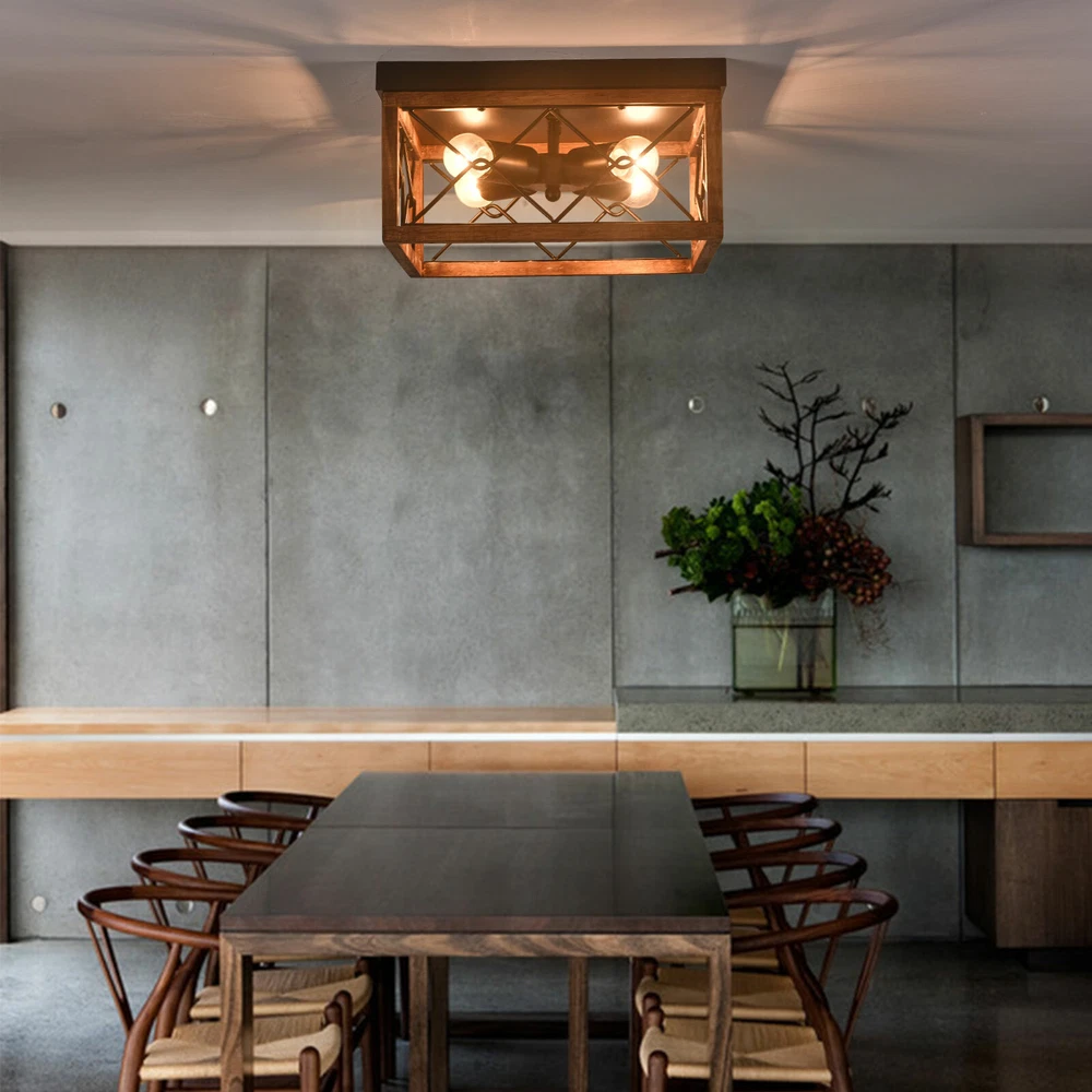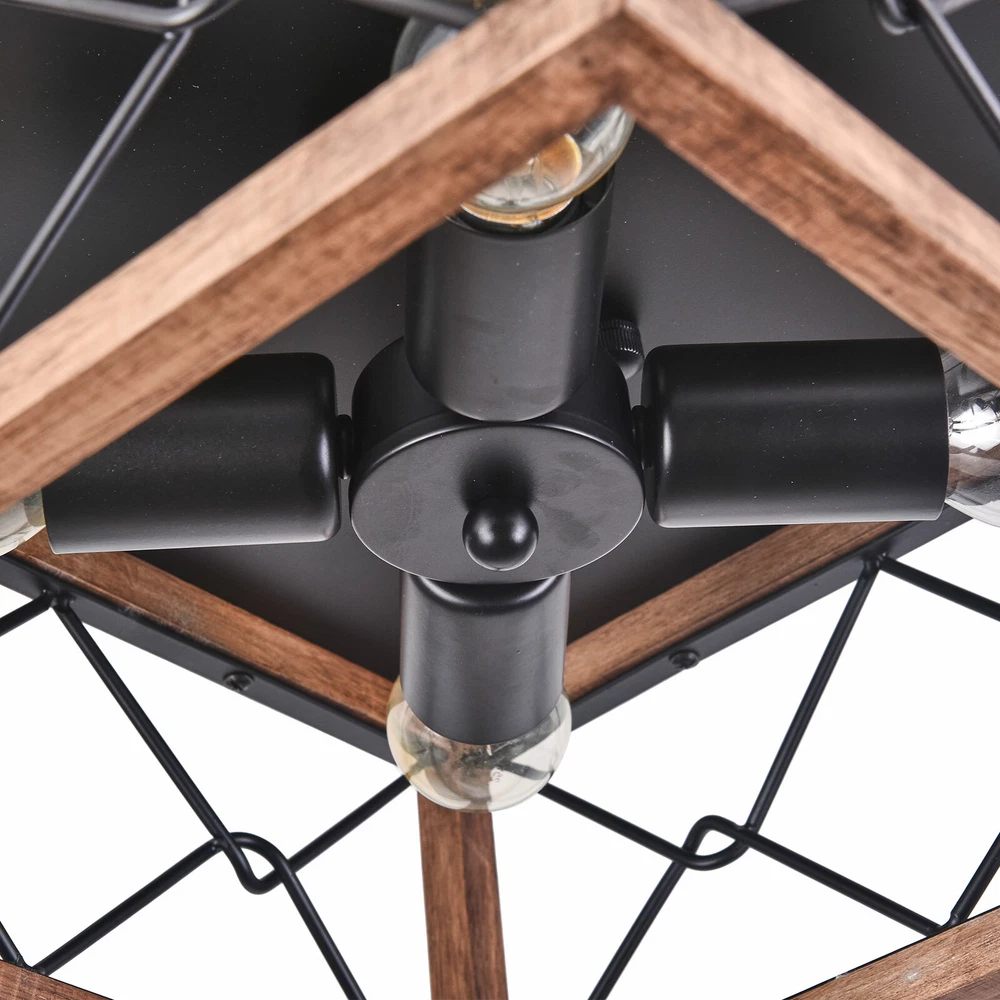 Compatible bulbs: CFL, Halogen, Incandescent or LED Is Bulbs Included: No Overall size: 12.6*6.2 in Type: Chandelier Energy Star: 10 Stars Finish: Wood Effect Department: Adults Power Consumption: Max 40W gtin13: Does not apply UPC: Does not apply Installation Area: Indoor Number of Lights: 4 MPN: Does Not Apply Assembly Required: Yes Light Direction: Indirect Features: 4-Light Manufacturer Warranty: 3 Years Shade Shape: Square * Feature *: Creative Design,Durable Material,Beautiful Appearance Room: Dining Room, Bedroom, Bar, Attic, Entryway, Home Office/Study, Kitchen, Living Room, Hallway Brand: Unbranded Style: Farmhouse Number of Light Source: 1 Material: Wood, Iron Bulb Base: E26bulb socket Item Diameter: 12.6'' Voltage: 110-120V Color: Black Lighting Technology: LED/CFL/Incandesce/Edison Bulb/Halogen