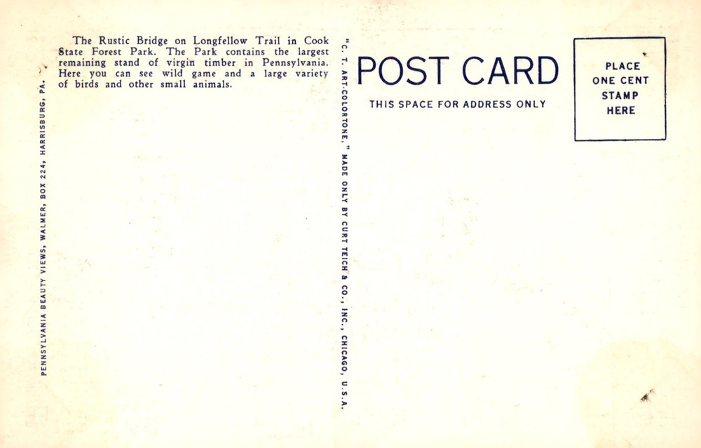 Explore the largest stand of virgin timber in Pennsylvania at Cook State Forest Park. Witness wild game, birds, and small animals along the Longfellow Trail.