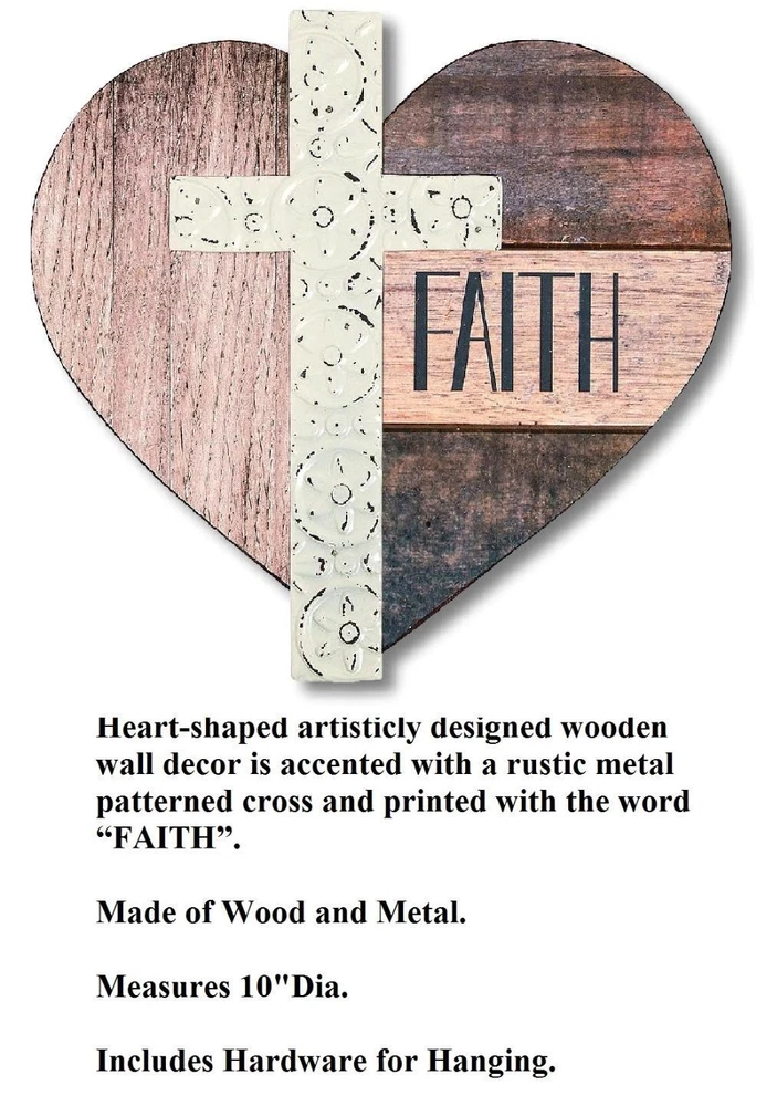 Rustic Heart Shaped Wooden FAITH Wall Sign Plaque with Metal Cross 10"Dia #9666 Rustic Heart Shaped Wooden FAITH Wall Sign Plaque with Metal Cross 10"Dia #9666 Click images to enlarge Description Rustic Heart Shaped Wooden FAITH Wall Sign Plaque with Metal Cross 10"Dia. For a constant reminder to keep faith in your heart, prominently display this religious wall decoration in your home! The heart-shaped sign is adorned with a metal patterned cross and the word, “Faith”. Details: Measures 10"Diameter Made of Wood with Metal Cross Includes Hardware for Easy Hanging ~Buy more than one item at the same time from our eBay store and save in shipping costs!~ (If buying different items, just put them all in your cart before paying, to get the combined shipping discount!) Shipping We use UPS SurePost, UPS, USPS and FedEx SmartPost to deliver our products to your home, depending on which method is more efficient for your order. We use suppliers for some of our orders and our suppliers will choose the service that is used for these orders. PLEASE MAKE SURE YOUR ADDRESS CAN BE VERIFIED BY USPS. Please allow 7-10 days for the item to reach your home. We cannot be responsible for items shipped to incorrect or incomplete addresses, which may result in the cancellation of your order. YES, we do combine shipping! The highest shipping cost item ships at regular price, and each additional item ships at $2.00 more in additional shipping charges. If you are buying several different items from our store, put them all into your cart before paying to get the combined shipping discount. Terms of Sale Unless otherwise noted, we accept returns up to 30 Days after your purchase, through the eBay Returns System. Please use eBay to contact us if there is any problems or issues with your order. In some cases, we order the item purchased from one of our suppliers, and it is shipped directly from our supplier to the customer. There are times when an item unexpectedly becomes unavailable from our supplier. We do our best to check on all of the items availability several timea a day. If an item is unexpectedly unavailable, we will issue a refund immediately. Contact Us Please use the message center in eBay to contact us. We check our message box in eBay several times a day. If you have any questions or concerns with your order, please feel free to contact us. We care very much about our customers being 100% happy with their purchases. We would very much appreciate you letting us resolve any issues you may have with your order by contacting us first, before taking any other unnecessary actions. Images sell! Get Supersized Images & Free Image Hosting Create your brand with Auctiva's Customizable Templates. Attention Sellers - Get Templates Image Hosting, Scheduling at Auctiva.com.