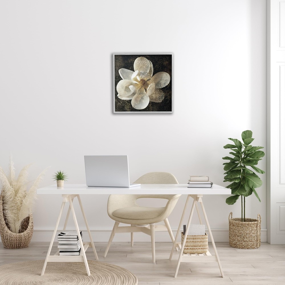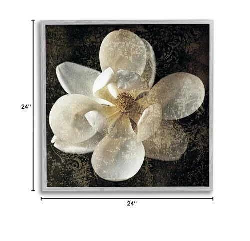 Framed Giclee Sizes Include Standard: 12 x 1.5 x 12 Large: 17 x 1.5 x 17 Oversized: 24 x 1.5 x 24 Wall Art is Ready to Hang with Hardware Free Hanging. No installation required. For Easy Set Up Lean or Layer Artwork on Shelf or Against Wall. Our giclée prints are carefully mounted on a durable MDF backing, and then perfectly finished in a 1.5 inch thick woodgrain frame. Mounted frame colors include black, gray farmhouse and white. Made In USA. Artwork Relates To: Floral, Modern, Plant, Flower, Floral, Magnolia Design by John Seba