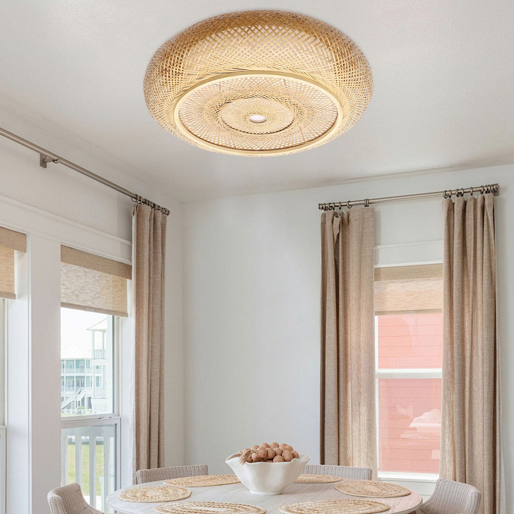 Specifications Color: Rattan Yellow Material: Rattan, Iron, PC Shape: Round Style: Rural Assembly Required: Yes Mounting Type: Ceiling Mount Indoor/Outdoor Usage: Indoor Control Type: Wall Switch(Not Included) Light Source Type:3*E26 Bulbs(Not Included) Max. Bulb Power: 40W(Incandescent Bulbs); 5/ 7/ 9/ 12W(LED Bulbs) Efficiency: E Voltage: 110V, 60Hz Illumination Area: 10-15m²/107.64-161.46ft² Product Size(D*H): 60*17cm/23.62*6.69in Package Size: 61*61*20cm/24.02*24.02*7.87in Gross Weight: 1.8kg/3.97lbs Net Weight: 1.8kg/3.97lbs Welcome Description Lighting fixtures are essential furniture in our daily lives, not only injecting appropriate lighting into our living spaces but also bringing a touch of comfortable warmth to our lives. This ceiling light features a sleek round silhouette and natural rattan yellow color that epitomizes understated comfort and simplicity. It elegantly merges form and function to illuminate not just rooms, but hearts and lives alike. Key Features Build to Last: The product is made of high-quality rattan, iron and PC materials , which is environmentally friendly , beautiful, and sturdy for great durability . Powerful Lighting: You can install 3 E26 bulbs(not included) to prov ide powerful lighting ( 107.64-161.46ft² ). It features a PC shade that allows light to flow smoothly and softly, providing a bright light to illuminate your life. Eye-catching Appearance: The rattan-color outlines and rounded shape present a natural and rustic appearance that complements most decorative styles, adding a touch of warmth and serenity to your room. Thoughtful Design: By purchasing dimmers and dimming bulbs (both not included), you can also adjust the light to create different lighting effects. Safety Guaranteed: It is connected to the grounding wire, which provides you with sufficient safety during daily use. Easy to Install: Practical installation accessories and a simple structure allow you to complete the installation and start to use it in a breeze. Ideal Gift: The delicate appearance and practical function make it an ideal housewarming gift for your friends, colleagues, and families. Buy with Confidence: We stand behind all our guests and look forward to assisting you with your purchase. It is our pleasure to answer your confusion and questions. The end of the story between us is not "we sell and you buy". Details Standard E26 Lamp Holder: They support the use of LEDs, Halogens, etc., making it very convenient for you to purchase and replace. Sturdy Base : The enlarged round base increases stress area and can make the item fixed firm without falling easily. Application It illuminates an area of 107.64-161.46ft² . It is suitable for a living room, dining room, study, bedroom, kitchen, hall, corridor, library, restaurant, cafe, store, waiting room, hotel, attic, foyer, club, dining room, and so on. It is also suitable for vaulted and sloping ceilings. Specifications Color: Rattan Yellow Material: Rattan, Iron, PC Shape: Round Style: Rural Assembly Required: Yes Mounting Type: Ceiling Mount Indoor/Outdoor Usage: Indoor Control Type: Wall Switch(Not Included) Light Source Type:3*E26 Bulbs(Not Included) Max. Bulb Power: 40W( Incandescent Bulbs ); 5/ 7/ 9/ 12W(LED Bulbs) Efficiency: E Voltage: 110V, 60Hz Illumination Area: 10-15m²/107.64-161.46ft² Product Size(D*H): 60*17cm/23.62*6.69in Package Size: 61*61*20cm/24.02*24.02*7.87in Gross Weight: 1.8kg/3.97lbs Net Weight: 1.8kg/3.97lbs Package Included 1* Ceiling Light 1* Base All Accessories for Assembly Notes Please check the dimensions of the product before ordering to ensure it fits your home. This package does not include the E26 bulbs, and you need to buy them yourself. Please wear electric insulation gloves(not included) and avoid scratching the surface of the lamp and the electric wire when installing. Please make sure that the power supply has been cut off before installation, and conduct a power test before installation. Please install it by a licensed electrician if necessary. Please do not install the light next to the air conditioner or heater to avoid rusting due to moisture, which will affect the service life of the light. Please use the light within the applicable voltage range and clean the light regularly. Please cut off the power supply when you clean the light. Please allow the slight color difference caused by the shooting light and 1-3cm error due to manual measurement, and make sure you do not mind before you order. Payment Delivery details Terms of sales About us Contact us Payment We accept ebay payment 。 Fees such as import duties, taxes are not included in the item price or shipping costs. These charges are the buyer's responsibility. Delivery details Shipping: 2-9 working days to: USA Terms of sales We maintain high standards of excellence and strive for hundred percent customer satisfaction. Feedback is very important to us. We hope that you contact us immediately before you give neutral or negative feedback, so that we can address your concerns. It is impossible to address issues if we do not know about them! About us Your satis faction is our ultimate goal. We work hard to earn your trust and future business. Our certified technicians have tested each item before shipping. The unit comes with 1 year limited warranty on all manufacturing defects. a) If you receive a defective item, you may return it or ask for a discount. Please contact us within 14 days after you receive the package. b) What you returned must be intact and in its original packaging as re? u. Customer is responsible for shipping costs of the returned item. c) We will cover the cost of shipping back t with the shipping rate indicated in the registration page. We will send you a new unit or refund the full payment you paid. Thank you. Contact us Business Hour Business Hour: Monday To Friday: 8:30 AM to 5:00 PM (Beijing China time) Due to time zones, our reply to your questions may not be immediately. But within above working t