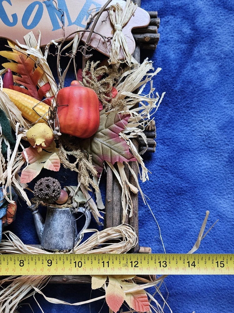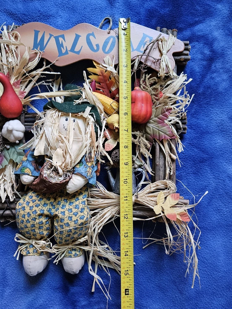 Add a touch of rustic charm to your home with this Scarecrow Fall Autumn Harvest Welcome Sign. The sign features a square shape with a 3D effect and a rusted look finish. It is made of wood, fabric, and straw materials and is painted with a multicolor design. This wall or door hanging decor is perfect for any room in your home and is ready to hang. The sign is designed with a vintage theme of autumn, fall, and harvest. It is also customizable, but not personalized, and does not require any additional parts. Welcome your guests with this charming decorative piece from Tb Trading Co.