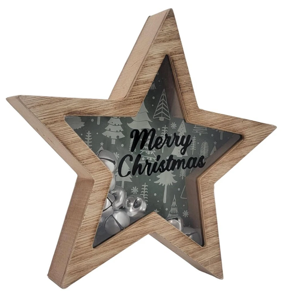 Merry Christmas Wooden Star Decor with Jingle Bells - Holiday Shelf Decoration Add a touch of holiday cheer to your home with this charming Merry Christmas wooden star decor. Crafted in a festive star shape, this decoration features a lovely background of winter trees and a sprinkle of jingle bells inside for an extra festive touch. Perfect for shelves, mantels, or tabletops, this piece brings warmth and joy to any room. Its natural wood finish adds rustic elegance, making it a beautiful addition to your Christmas decor collection. Celebrate the season in style with this delightful and unique decoration! ____________________________________________________________________ Our Commitment to Your Satisfaction: If there is a problem with your item, We Will Take Care of It: If you receive an item that is defective, damaged, or not as described above, we will resolve the problem as quickly as possible at No Cost To You. We will work with you to arrange for repair or replacement if possible. We will issue a return label if return is needed, and we will file a shipping damage claim. You can expect a full refund of your original payment within three business days of our receipt of the returned item. If you've simply had a change of heart or made an incorrect purchase, we understand. You're welcome to return the item in its original condition, along with all packaging and accessories. PLEASE NOTE; that in such cases, you'll be responsible for both the original and return shipping costs. It's important to mention that items labeled "AS IS" with a "NO RETURNS" policy are exempt from our standard return procedure. Unfortunately, these items cannot be returned for any reason. Should you need to cancel your order before it ships, we accommodate mutual cancellations with a nominal $10.00 restocking fee. This fee helps cover the administrative time and processing costs associated with the cancellation. Your satisfaction is our priority, and we're here to make sure your experience with us is positive every step of the way.