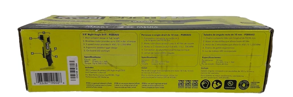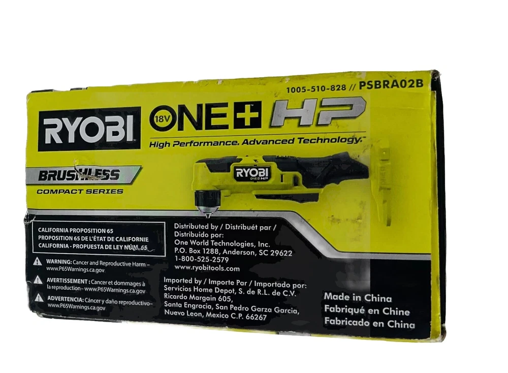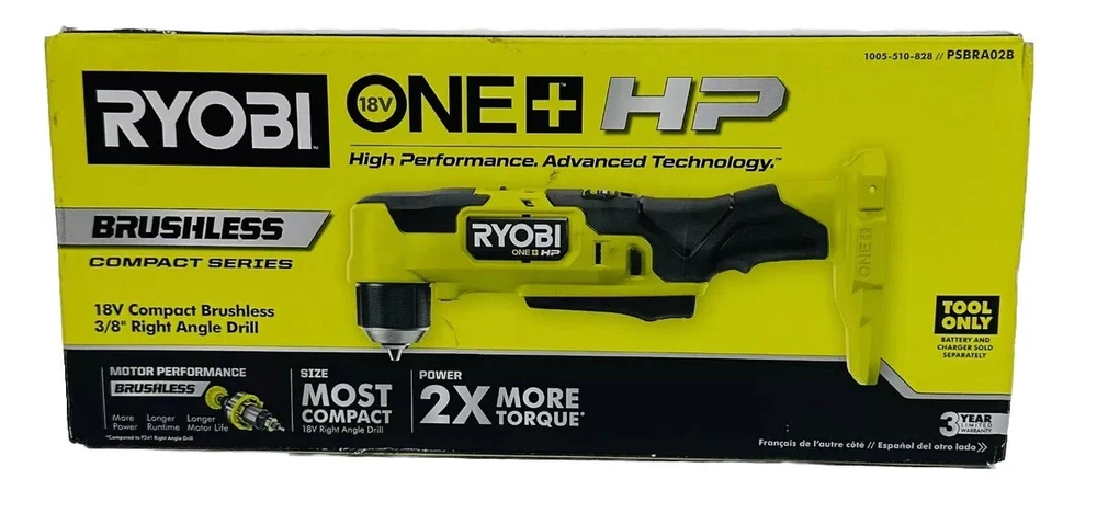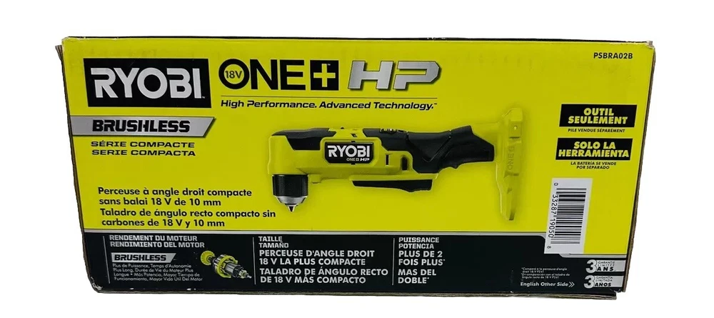 This Ryobi 18V Cordless Right Angle Drill - PSBRA02B is the perfect tool for your drilling needs. With a maximum torque of 350 in-lbs, it can handle tough drilling tasks with ease. The battery-powered device has a charging time of just 22 minutes, making it ready for use in no time. The drill has a lightweight and compact design, making it easy to maneuver and use in tight spaces. It features a brushless motor type and a keyless chuck type, with a chuck size of 3/8 in. The item diameter is 8 inches, and it has a battery capacity of 2 Ah. This set includes hand tools and is powered by a lithium-ion battery, which is not included. The drill is green in color, and it weighs 2.7lbs. Product Description: - Brand new item, unopened - Comes in original box Please refer to the attached pictures for a detailed view of the box contents. If an item is not shown in the pictures, it is not included in the box. We encourage you to make your purchase decision based on the provided information. Thank you. Returns Policy: - We offer a 30-day return policy. - If you choose to return the item, a deduction fee will be applied to cover restocking fees and shipping label costs. - An additional deduction fee will be applied if the item is received in a different condition than when it was originally shipped. - Please review all pictures to assess the condition and contents of the box. Important Note: If the item needs to be shipped to Puerto Rico, please be aware that additional charges may apply if the item is oversized or weighs more than 8 pounds. Kindly contact the seller for further information regarding shipping to Puerto Rico.