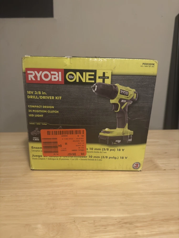 This item is Pre Owned in Good Condition. Tested. Refer to the listing photos for exact item, contents, condition and box you will receive upon purchase. Introducing the Ryobi ONE+ Cordless Drill/Driver Kit with Battery and Charger (Model: PDD209K). This set includes a powerful drill with a maximum torque of 330 in-lbs and a brushless motor type for efficient operation. It operates at a speed of 600 RPM and is powered by an 18V Lithium-Ion battery with a capacity of 1.5 Ah. This compact drill set comes with a 3/8 inch keyless chuck size, making it perfect for various applications. The set also includes one battery and battery charger with a charging time of 1 hour. The item length is 8.4in while the item width is 7.2in, and the item height is 3.2in. The Ryobi ONE+ Cordless Drill/Driver Kit is ideal for Home & Garden, Tools & Workshop Equipment, Power Tools, and Cordless Drills.