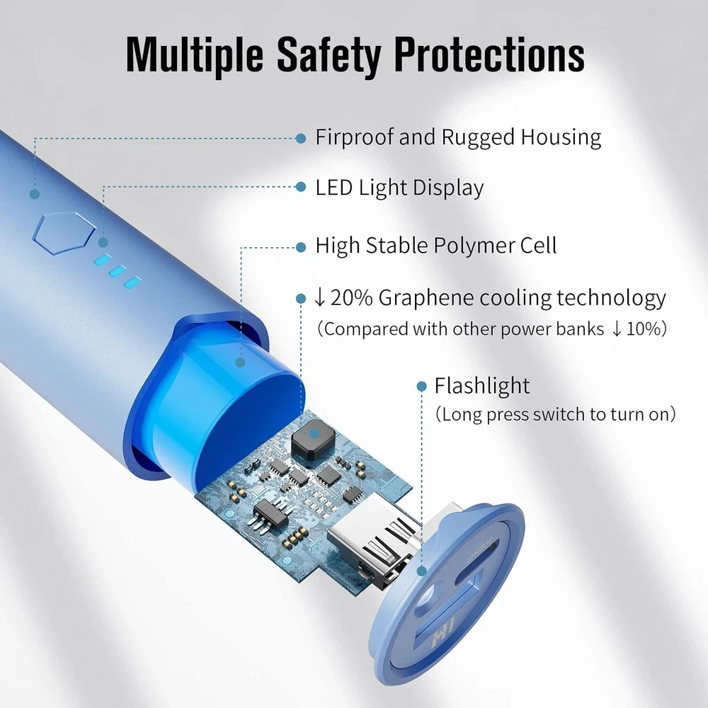 S03 Portable Charger, Small Power Bank External Battery Pack, 5000mAh, Blue Product Details Product Dimensions: 4.2 x 1.1 x 1.1 inches Item Weight: 3.52 ounces Item model number: S2103 Batteries: 1 Lithium Ion batteries required. (included) Special features: Flashlight Other display features: Wireless Color: Blue Manufacturer: Shenzhen Vanyust Technology Limited Country of Origin: China Connector Type: USB Type C Brand: SIXTHGU Battery Capacity: 5000 Milliamp Hours Special Feature: Flashlight 5000mAh Capacity: 5000mah rechargeable external battery pack charges most smartphones 2-3 times. Please note that this power bank's capacity is less than your phone's battery capacity due to the phone's internal components and other factors 3A Fast Charging: The 5000mAh Power Bank Fast Charging for devices (up to 5V/3A), compatiable with iPhone 14/13/12/11/X/XR/, Samsung Series. Long life Backup Flashlight: With built-in LED flashlight, this small portable phone charger can be used as backup flashlight for emergency, Long press button 3s, it will light up the dark for you. Support USB-C Charging: Support USB-C Output, you can use any of your charging cables to power your devices anytime, anywhere SAFETY & RELIABLE: Premium UL2056 & MSDS & UN38.3 certified ; Premium protection IC against over-heating, short-circuiting; Fireproof protection-Housing