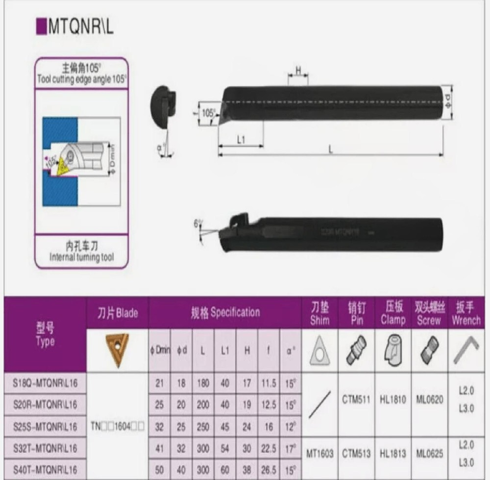 Model: S16Q-MTQNR16 Cutting direction: right Insert: TNMG1604 Material: alloy steel Color: Black Package include: 1p S16Q-MTQNR16 1pc wrenches Notice: This product does not include blades, the blade is purchased separately