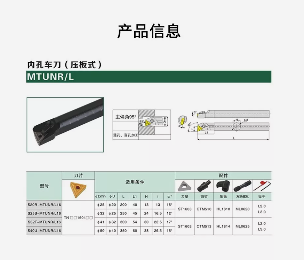 Model: S16Q-MTUNR16 Cutting direction: right Insert: TNMG160404-TM Material: alloy steel Color: Black Package include: 1PC S16Q-MTUNR16 1pc wrenches Notice: This product does not include blades, the blade is purchased separately