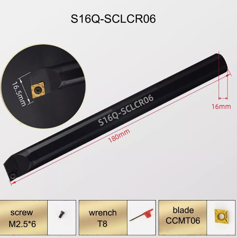 Specification: Model: S16Q -SCLCR06 Color: Black Material: Carbon Steel Shank D:16mm Shank L:180mm l Compression method: Mretest compression method Wrench :T15 Inserts Material: Steel Applicable blade:CCMT060204 Suitable For: Semi-finishing, finishin Weight:304g Model :CCMT060204 15TF Material: carbide Color: as picture shows Quantity: 10pcs, satisfied your demand Durable and practical Sharp and portable Package:10pcs (Boxed) Package included: 1 xS16Q-SCLCR06 10 x CCMT060204 15TF inserts (Packed with plastic box) 1x Wrench Features - High grip strength, impact resistance and strong, clear speed advantage in cutting off a large margin and processing; - To maintain tight tolerances unmatched performance; - Practical and a variety of processing environments, even in very dirty environments such as cast iron also has good features; - User clamping and convenient way to replace, only a wrench to complete the replacement of the knife blade and pad. Notice Buy a number of products are discounted. these are Suitable for machining Steel parts/stainless steel /cast iron. If you need a better product please enter the store search or write to tell me. We have more products in the upload, please pay attention to my shop. If you need to contact me to send a link, if you need to buy in bulk can also send me a letter, I will give you recommend the best products, at the lowest price contact us for bulk purchase . Welcome your inquiry. Thank you for your support!