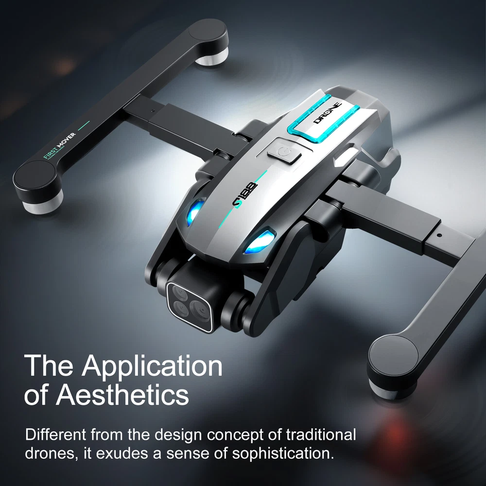 Product Introduction Model :S188 Product size: Folding size: 14*8*7CM Expansion size: 28*21*34CM Packing size: 18*19*11CM Frequency: 5G wifi signal Connection signal: WIFI transmission Material: Plastic, metal, electronic components Product color: Black Receiving channel: 4 channel 6 axis gyroscope Operation mode: remote control, mobile APP Battery capacity: 7.4V 1600mah Remote control battery: 3.7V 500mah Charging method: USB charging cable Charging time: 100-120 minutes Usage time: 18 minutes Remote control distance: height 120 meters/distance 2000 meters Image transmission distance: 500 meters Camera: 4K Video resolution: 1280*720 (25FPS) Photo resolution: 3840×2160(without compression) Lens Angle: remote control adjustment 180° Speed shift: Slow, medium, fast Product features: GPS positioning, brushless motor, optical flow positioning, electric adjustment 180° camera, obstacle avoidance function 1. With GPS positioning,the drone can be one-key return, low power and out of control automatic return. Dual camere version with optical flow mode and obstacle avoidance function 2. Up/down, forward/backward, left/right turn, left/right flying, all directions can be fine-tuned, stable and easy to operate 3. WIFI functions: take photos, video and real-time transmission, emergency stop, trajectory flight, one-key surround, intelligent follow, add music, screen rotation, display the drone position 4. Built-in HD dual camera, front camera lens can be adjusted through the remote control 180° to view more comprehensive 5, Speed can be free switch, the drone can adjustable headless mode function. 6, With rechargeable controller and the drone body with 8pcs LED night lights 7, Folding arm and blade to be smaller volume, easy to carry out The package includes: Drone *1 Remote control *1 7.4V 1600mah battery *2 USB cable *1 Screwdriver *1 Blade *4 Instructions *1 Contact us: If there is any problem with the product, please contact us in time and we will give you a satisfactory solution. thank you